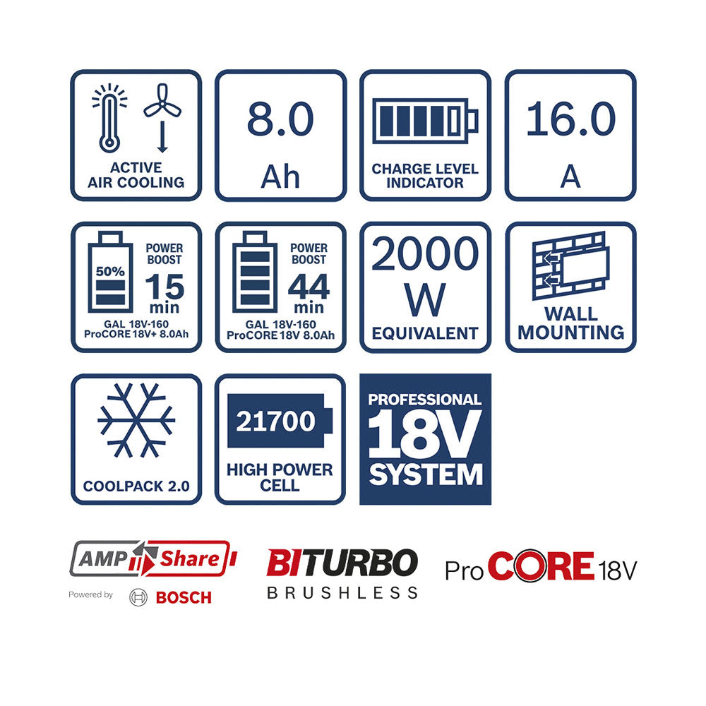 Das ultraschnelle 18V-Ladegerät bietet eine verbesserte Bedienoberfläche und lädt den ProCORE18V 8,0Ah Akku in nur 44 Minuten vollständig auf. Es verfügt über drei Lademodi: Standard, PowerBoost und LongLife. Dank der Active Air Cooling-Technologie bleiben die Akkus auch während des Ladevorgangs kühl, was ihre Lebensdauer erhöht und für eine optimale Leistung sorgt., , , Produktinformation, , Active Air Cooling-Technologie, 3 Lademodi: Standard, PowerBoost und LongLife, volle Ladung mit dem PowerBoost, 2x Akku je 1 kg