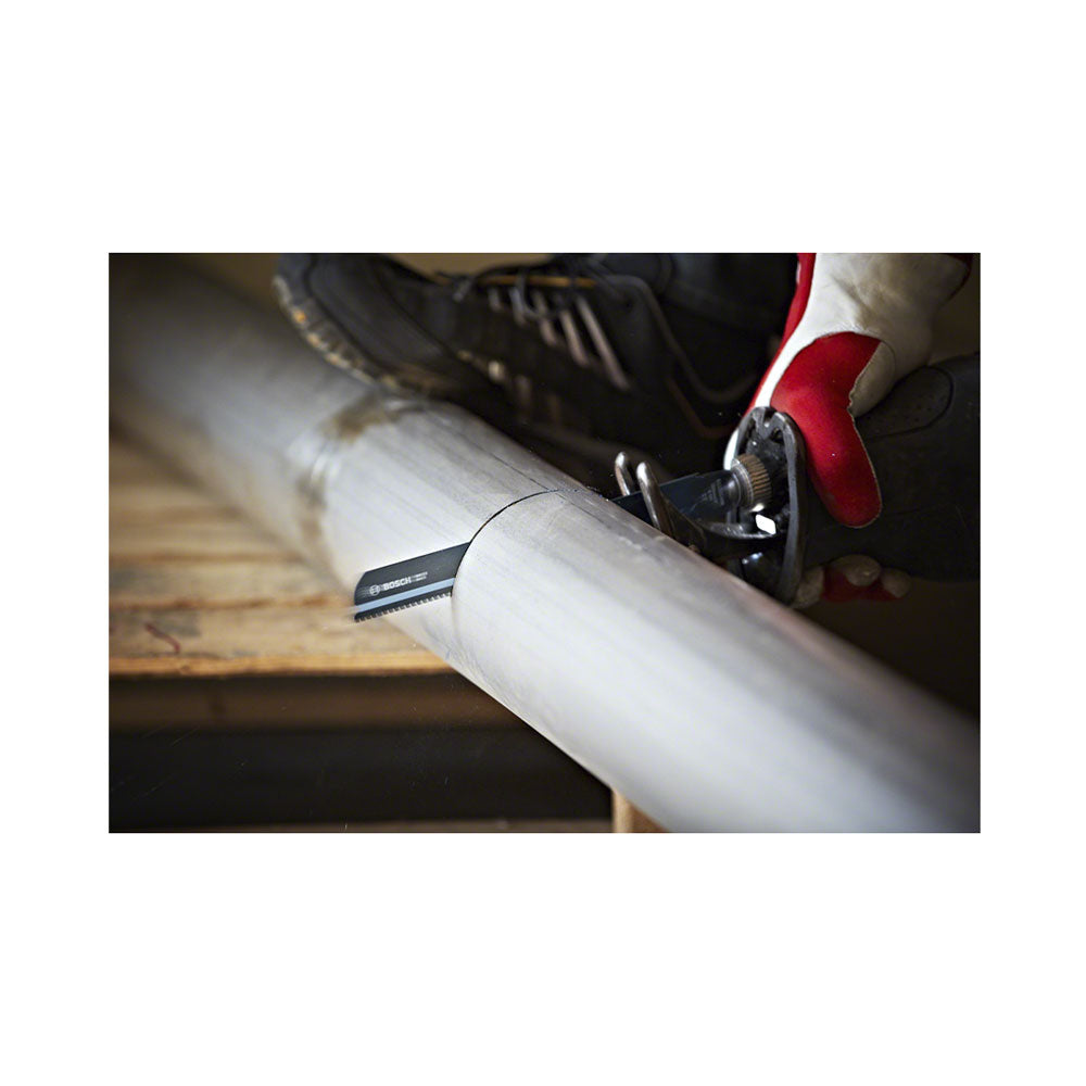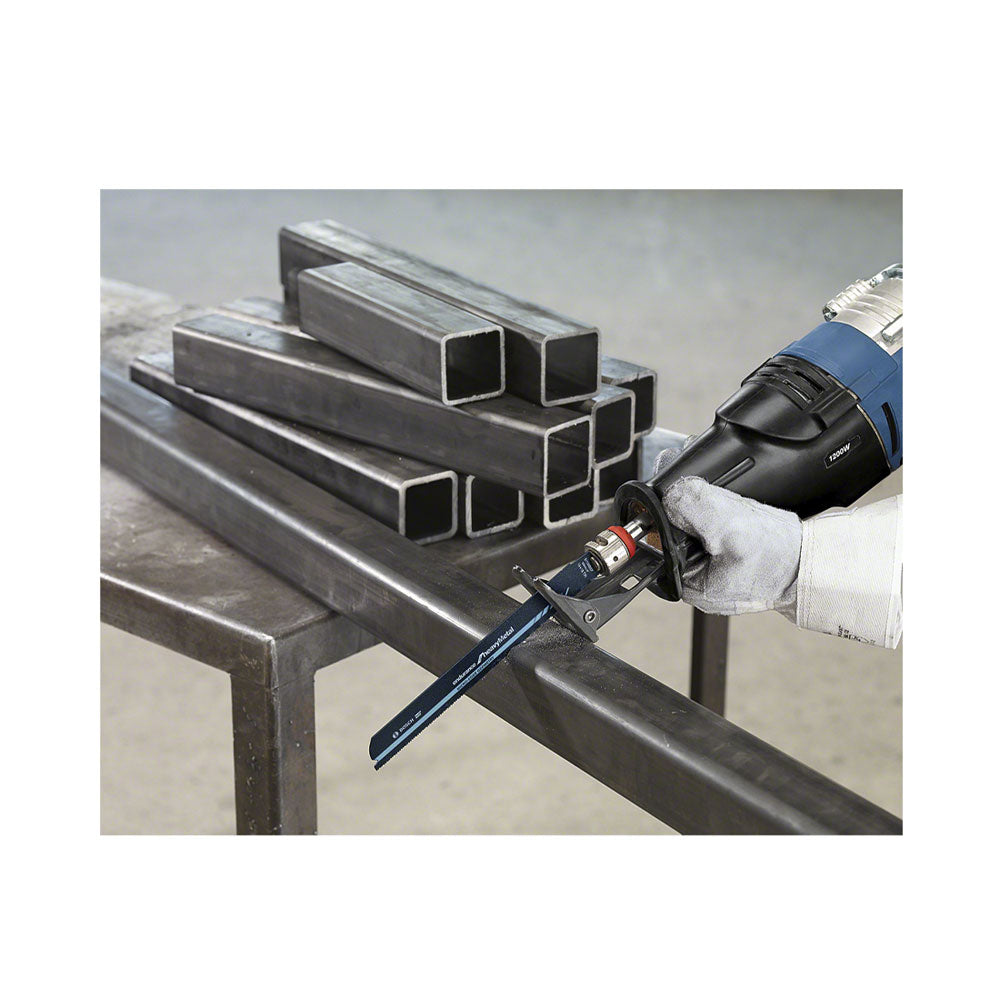 Das S 1130 CF Endurance for Heavy Metal Säbelsägeblatt bietet herausragende Leistung und kontrolliertes, gerades Schneiden in Metall mit aussergewöhnlicher Blattlebensdauer. Der breite Körper (22 mm) und die dicke Wandstärke (1,6 mm) gewährleisten die notwendige Stabilität für den Metallabriss. Die Micro Edge-Zahngeometrie mit präzisionsgeschliffenen Zähnen sorgt für maximale Lebensdauer. Dank der patentierten grossen 2x2-Zahnteilung wird die Geschwindigkeit und Haltbarkeit beim Schneiden dicker Materialien verbessert. Das Bimetallblatt eignet sich ideal für das Schneiden von Stahl und ist für Rohre und Profile mit einer Wanddicke von 4-12 mm geeignet. Die Standardlänge von 225 mm ermöglicht eine Schnittleistung von bis zu 175 mm.