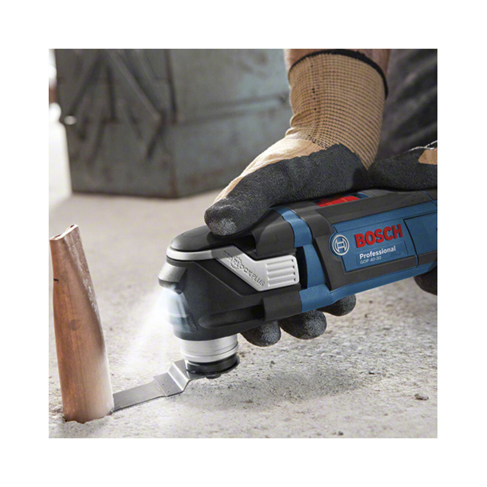 Der Bosch GOP 40-30 Multi-Cutter ist ein regelrechtes kleines Kraftpaket. Das Gerät lässt sich universell für jegliche Arbeiten einsetzen, ist zudem mit dem geringen Gewicht sehr leicht und ermöglicht auch längere Einsätze. Mit einer Vielzahl an Zubehör in der L-Boxx, ist er die ideale Ergänzung für jede Werkstatteinrichtung., , , , Produktinformation, , Optimierte dreidimensionale Kraftschlussverbindung, Snap-In-Funktion für einen einfachen Werkzeugwechsel, Sichere Werkzeugführung, Komfortable Handhabung, Ergonomischer Griff, Starker Allrounder, 400-Watt-Motor, Starlock-Schnittstelle, Konstante Drehzahl, Drehzahlvorwahl, LED-Licht, Softgrip, Mit Kabel, , , Geeignet für, , Anpassungen von Türzargen, Entfernen von Fenstern, Schneiden von Rohren und Nägeln, Holz, Plastik, Metall, , Lieferumfang, , 1 x Starlock BIM Tauchsägeblatt AII 65 APB, Curved-Tec, Wood + Metal, 1 x Starlock BIM Tauchsägeblatt AII 65 BSPB, Curved-Tec, Hard Wood, 1 x Starlock BIM Tauchsägeblatt AIZ 20 AB, Wood + Metal, 1 x Starlock BIM Tauchsägeblatt AIZ 32 APB, Curved-Tec, Wood + Metal, 1 x Starlock BIM Segementsägeblatt ACZ 100 BB, Wood + Metal, 1 x Starlock Carbide-RIFF Schleifplatte AVZ 78 RT2, Grout + Abrasive, 1 x Starlock Carbide-RIFF Segementsägeblatt ACZ 85 RT3, Grout + Abrasive, 1 x Starlock Deltaschleifplatte AVZ 93 G, 1 x StarlockPlus BIM Tauchsägeblatt PAII 65 APB, Curved-Tec, Wood + Metal, 1 x StarlockPlus BIM Tauchsägeblatt PAIZ 32 APB, Curved-Tec, Wood + Metal, 1 x StarlockPlus Carbide Tauchsägeblatt PAIZ 32 AT, Metal, 5 x Schleifblätter, K 2x80, 2x120, 1x240, L-BOXX 136