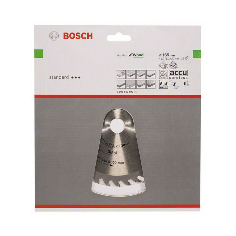 Produktinformation, , Max. Rotationsgeschwindigkeit 9000 U/min, 36 Zähne, Schnittbreite 1.7mm, Stammblattstärke 1.2mm, Aussendurchmesser 165mm, , , Geeignet für:, , Spanplatte, Akustikplatten, Leichtbauplatten, Verbundwerkstoffe, Weichholz, Hartholz/Massivholz, Pressschichtholz, Sperrholz /Tischlerplatte, MDF-Platte beschichtet