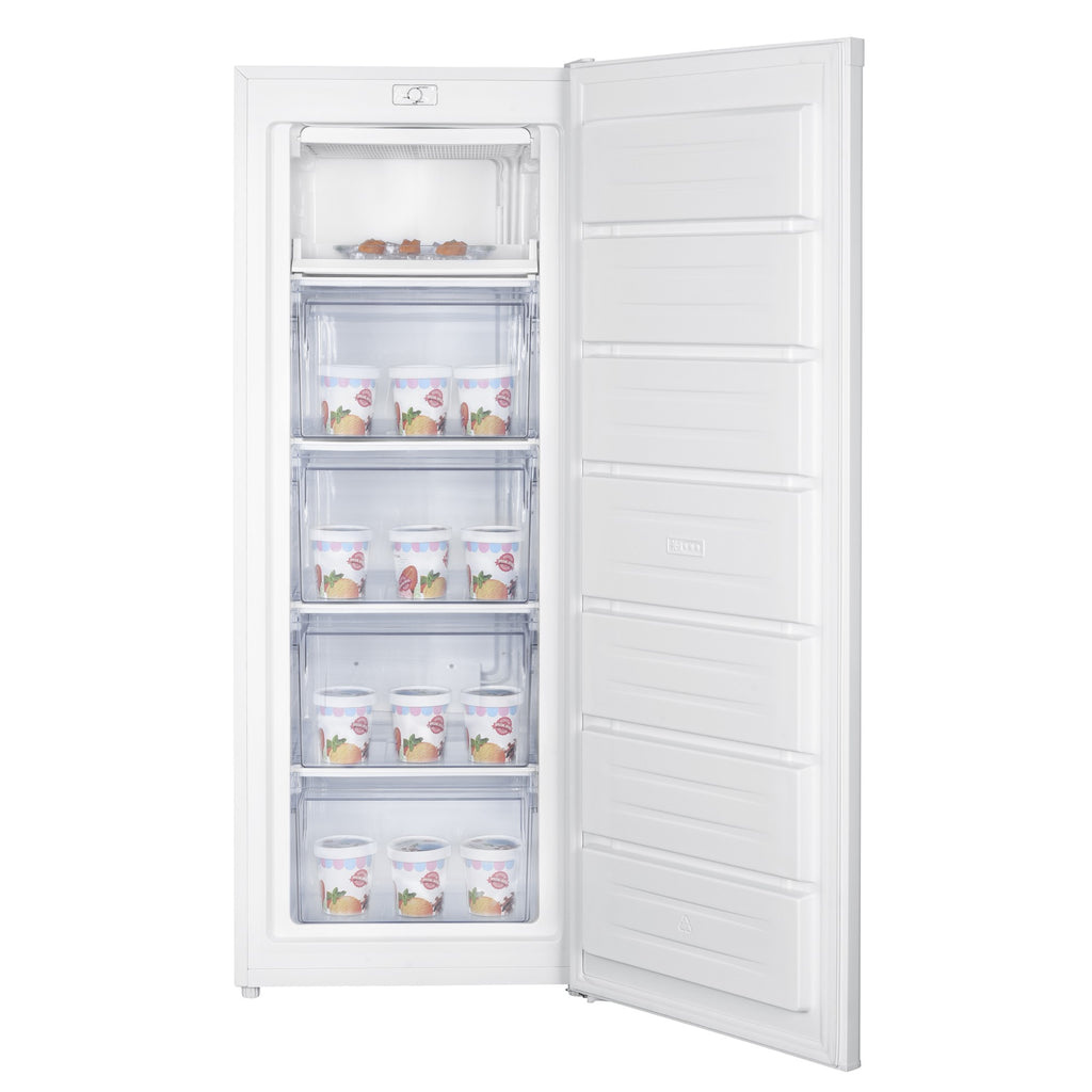 Der CEEM FF 165 Gefrierschrank bietet ausreichend Platz für Ihre Lebensmittel mit einer übersichtlichen Innenaufteilung aus vier Schubladen und einem zusätzlichen Ablagefach. Dank der umschlagbaren Tür und der verstellbaren Füße kann das Gerät optimal an Ihre Küchenbedürfnisse angepasst werden.