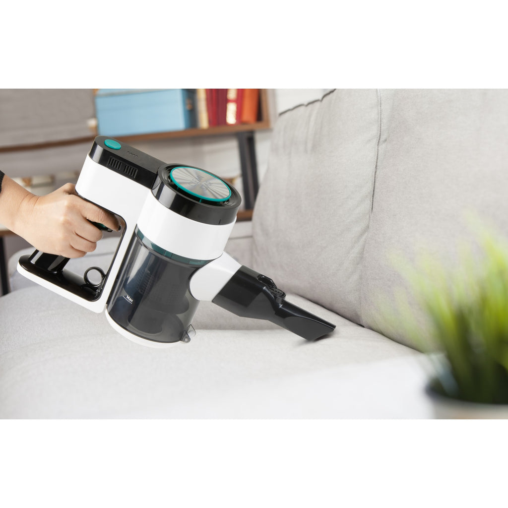 • Leistungsstarkes Zyklon-System mit 21,6 V Li-Ion Akku für langanhaltende Saugkraft