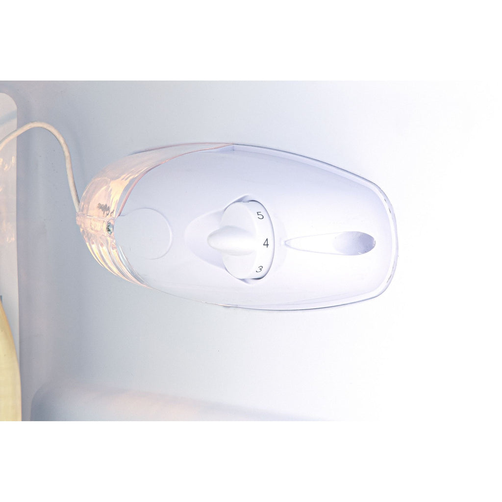 Mit einem Nutzinhalt von 120 Litern bietet dieser Kühlschrank ausreichend Platz für den täglichen Bedarf. Die Innenausstattung umfasst drei Ablageflächen aus Sicherheitsglas, eine Gemüseschublade und drei Türablagen, was eine effiziente Raumnutzung und übersichtliche Lagerung ermöglicht. Die integrierte LED-Beleuchtung sorgt für eine gute Ausleuchtung des Innenraums.