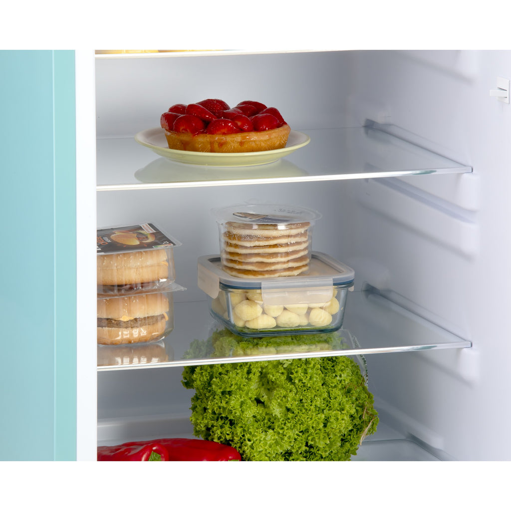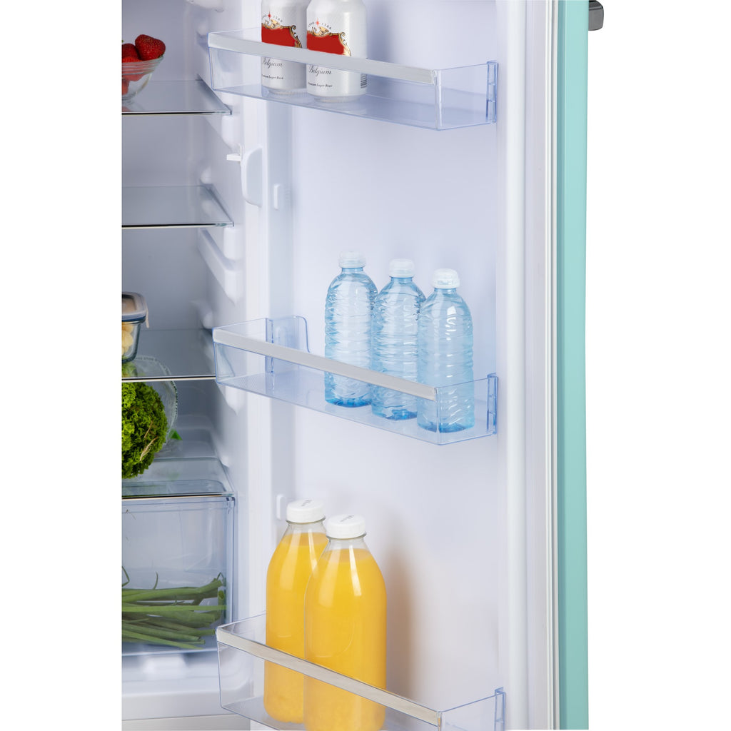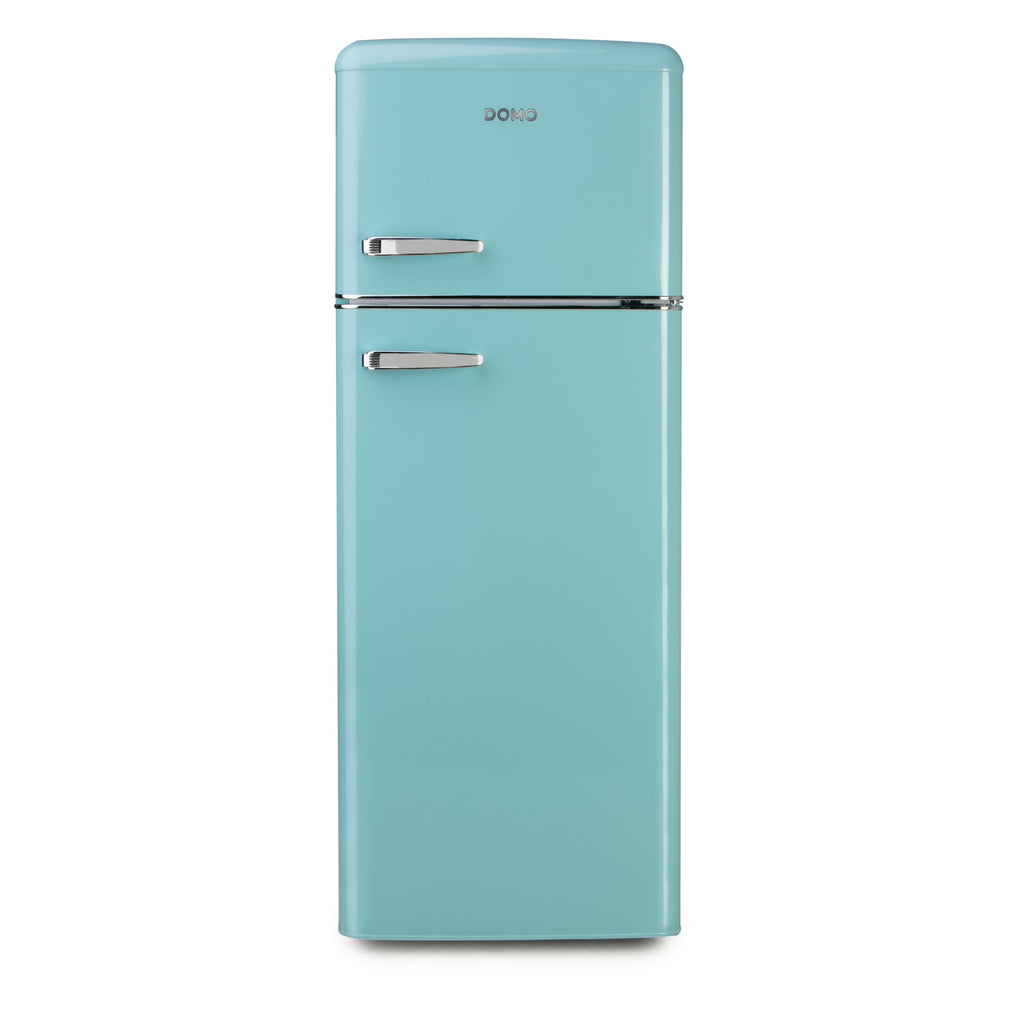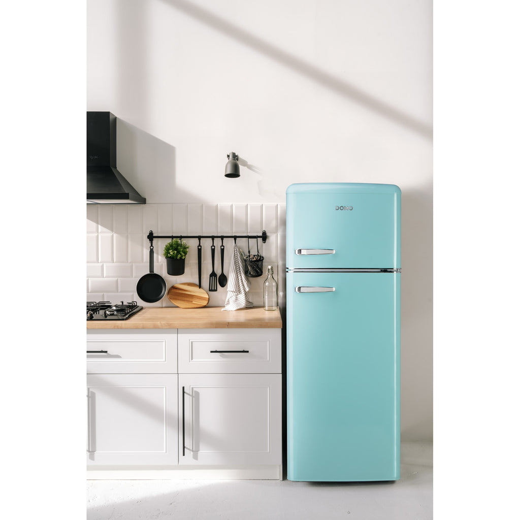 Die Kühl-Gefrierkombination DO91705R im ansprechenden Retro Look in der Farbe Türkis verbindet nostalgischen Charme mit moderner Funktionalität. Mit einem Nutzinhalt von insgesamt 206 Litern bietet dieses Gerät ausreichend Platz für Ihre Lebensmittel.
