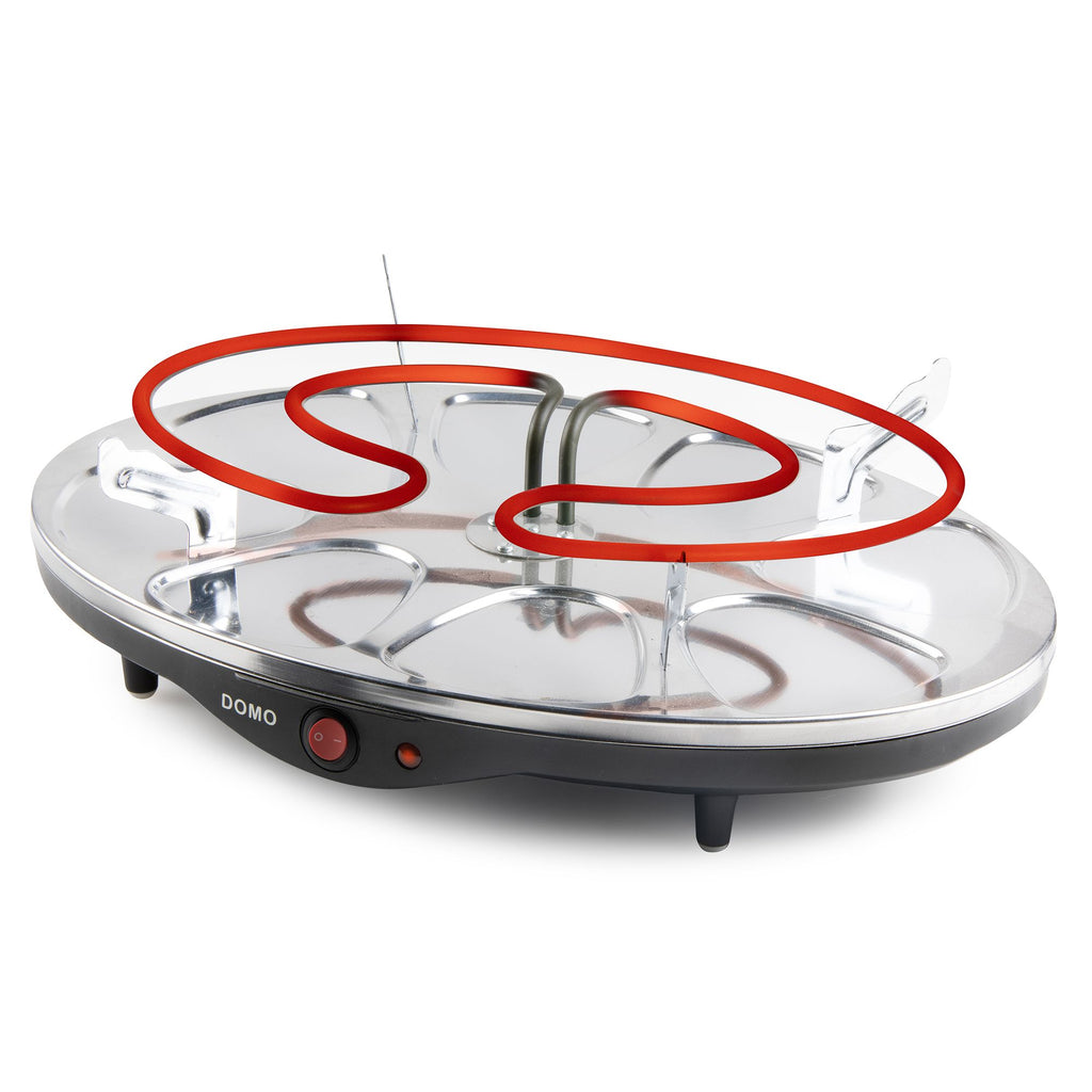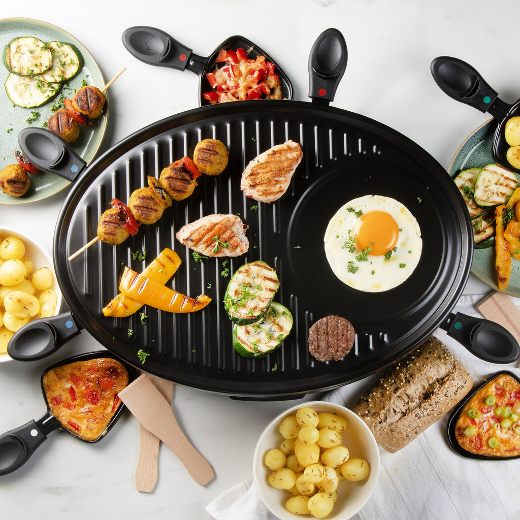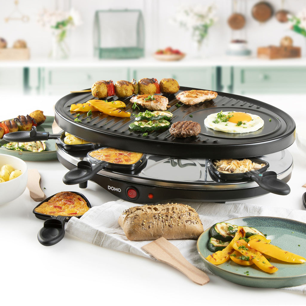 Der Raclette-Grill DO9038G von Domo sorgt für gemütliche Abende mit Familie und Freunden und bietet vielseitige Zubereitungsmöglichkeiten für bis zu 8 Personen. Mit hoher Leistung und pflegeleichter Oberfläche garantiert er gleichmässige Hitze und perfekten Genuss – ideal für Raclette, Grillgerichte, Pfannkuchen oder Spiegeleier.