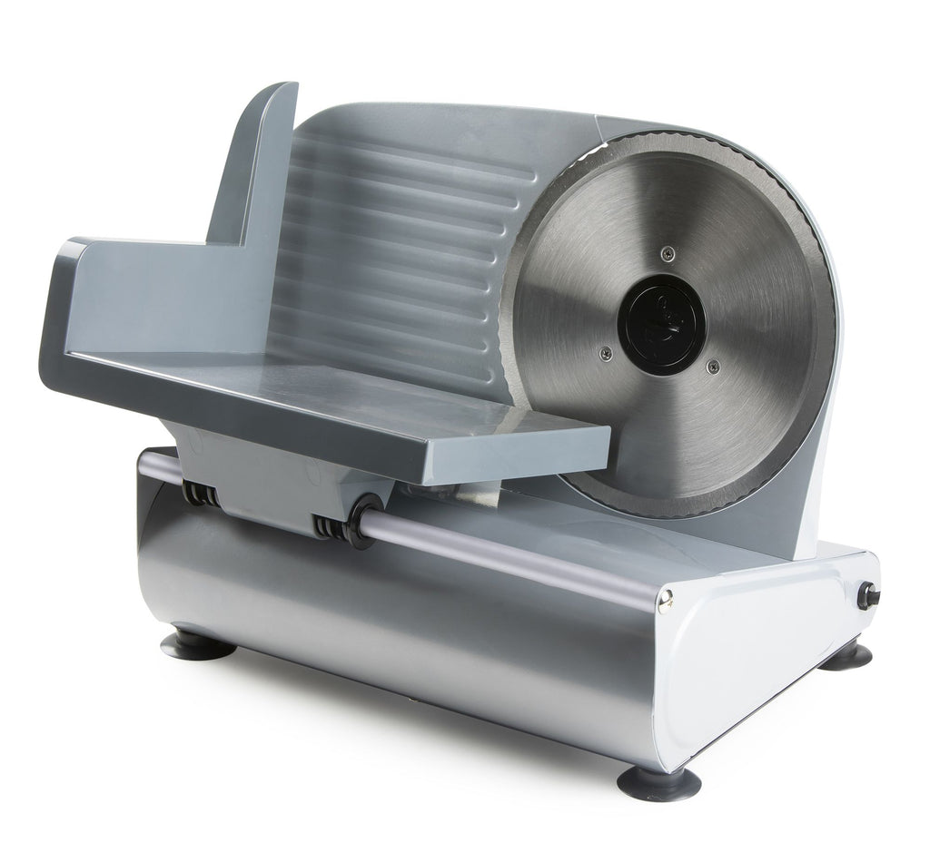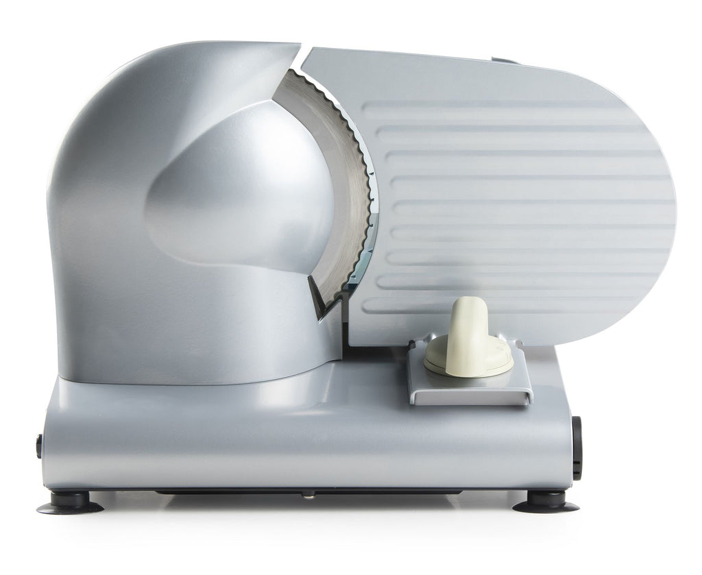 La lame d'un diamètre de 19 cm est légèrement dentée et en acier inoxydable. La résistance de coupe se fixait en continu entre 1 et 15 mm. Avec les aliments, vous obtenez toujours un résultat uniforme et uniforme et il n'y a aucun danger pour vos doigts. L'appareil est facile à prendre en charge. Vous pouvez retirer la lame et simplement nettoyer. Le tout coupe est très stable. Les 4 pieds en caoutchouc aspirer être coincé sur le plan de travail afin que l'appareil ne change plus.