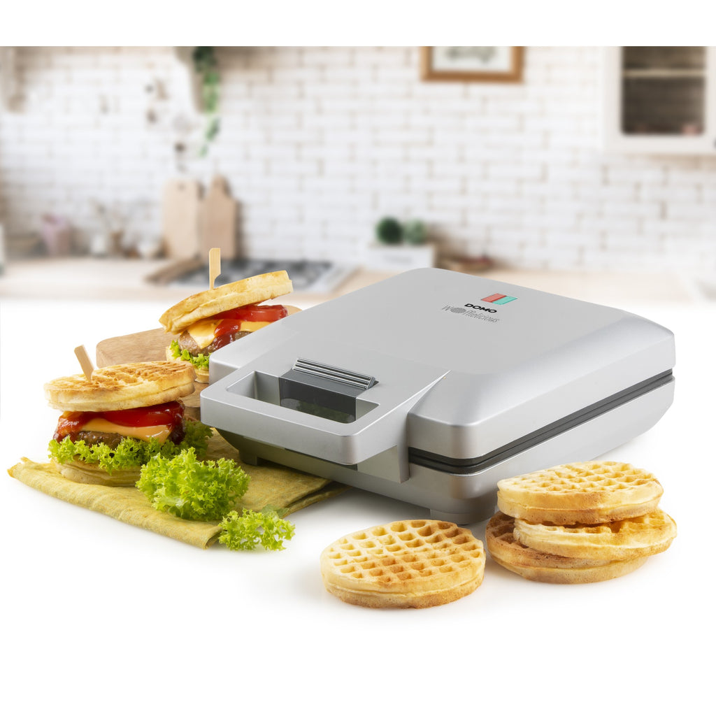• Einzigartig geformte Waffelplatten, um 4 runde Waffeln gleichzeitig zu backen.