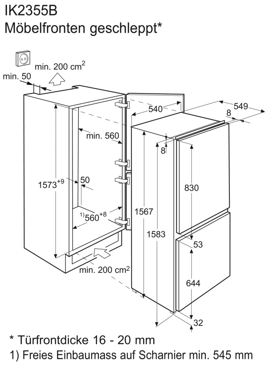 Kühl-/Gefrierkombination Einbau 157.2 cm