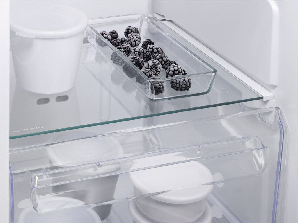 Dank der beweglichen Glasablagen mit halber Tiefe können Sie den