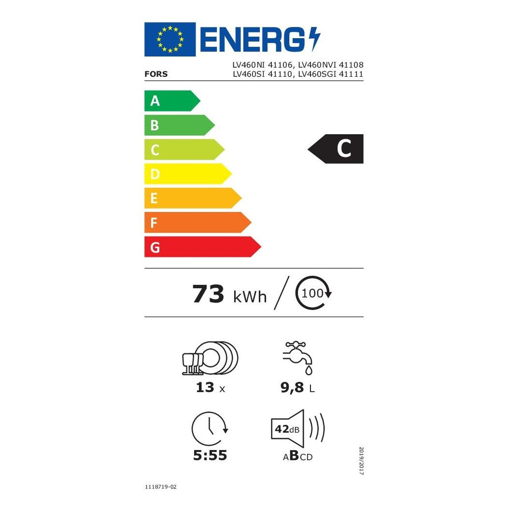 Der Geschirrspüler EURO - LV 460 Ni N 41106 von Fors ist mit einer Beladekapazität von 13 Massgedecken absolut geeignet Haushalte ab 4 Personen.