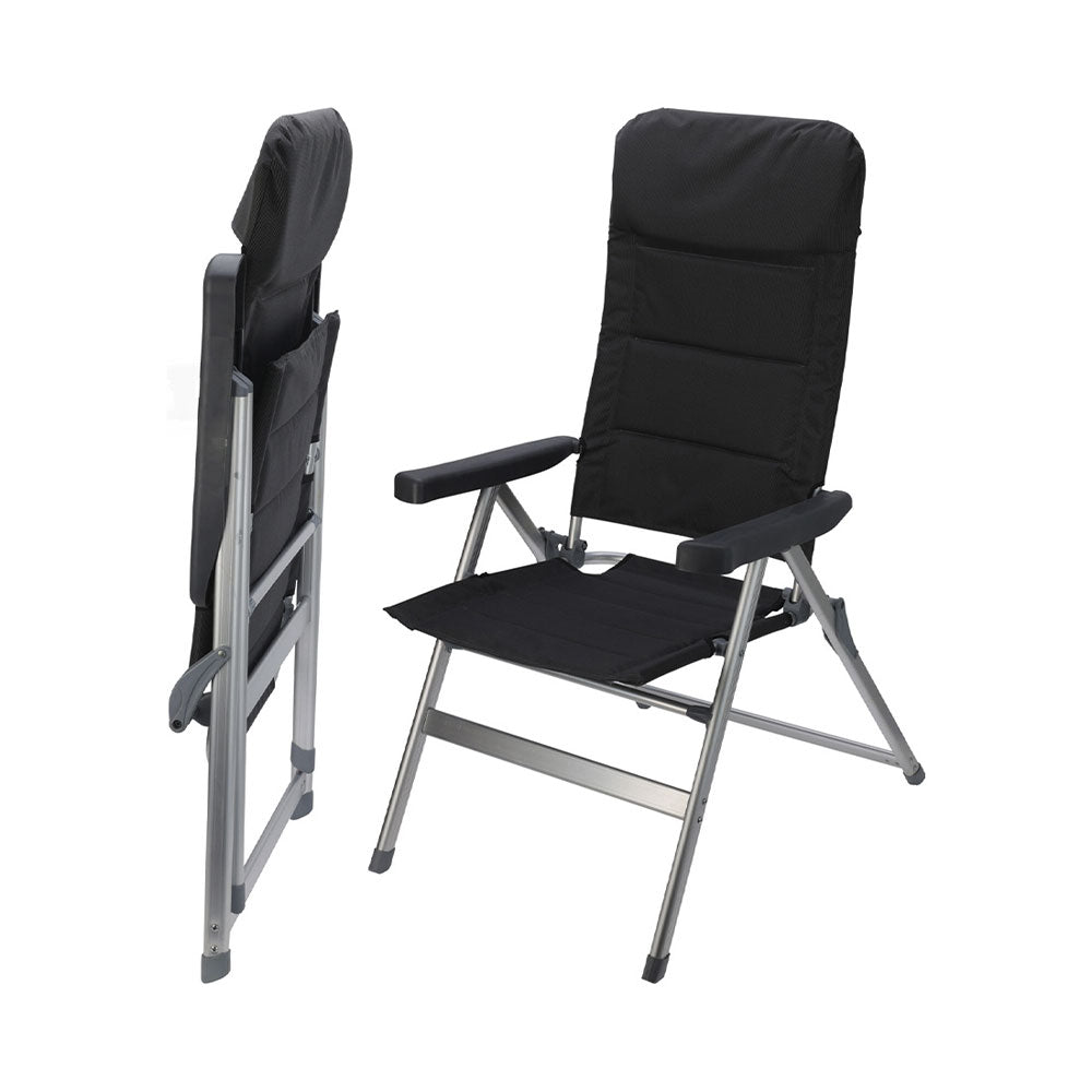 Mit dem FS-STAR Campingstuhl faltbar geniesst du maximalen Komfort bei jedem Outdoor-Abenteuer. Der leichte Aluminiumrahmen macht ihn stabil und einfach zu transportieren. Dank sechs verstellbaren Sitzpositionen kannst du dich jederzeit entspannt zurücklehnen. Der strapazierfähige 600D Polyesterstoff in Anthrazit sorgt für Langlebigkeit, während das integrierte Kopfkissen zusätzlichen Komfort bietet. Die dunkelgrauen Armlehnen und das silberne Aluminiumgestell verleihen dem Stuhl eine moderne Optik. Mit einer Sitzhöhe von 46 cm und einer Belastbarkeit von 120 kg ist er dein perfekter Begleiter für Camping, Garten oder Balkon., , , Produktinformation, , Robuster Aluminiumrahmen, 600D Polyestergewebe, Verstellbare Rückenlehne, Maximale Belastung bis zu 120 kg, Integriertes Kopfkissen, Ergonomische Armlehnen