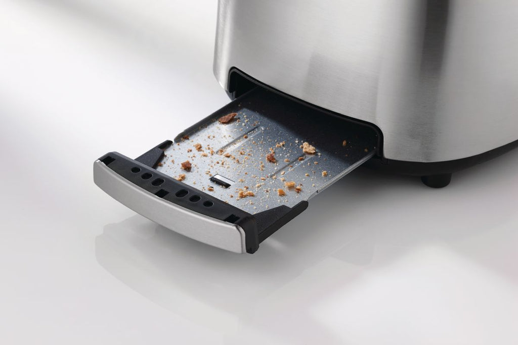 Edelstahl-Toaster:1000 W Leistung7 BräunungsstufenStopp/Aufwärmen/Auftauen-Funktionblaue Kontrollleuchtenabnehmbarer Brötchenaufsatzautomatischer Auswurfherausnehmbare Krümelschubladebeleuchtete Tasten