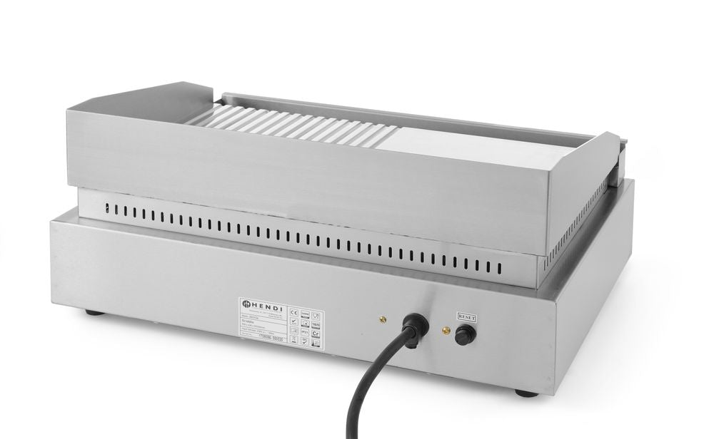 Marktname en Profi Line griddle, HENDI, Profi Line, 1/2 flat, 1/2 ribbed, 230V/2400W, 550x380x(H)240mm