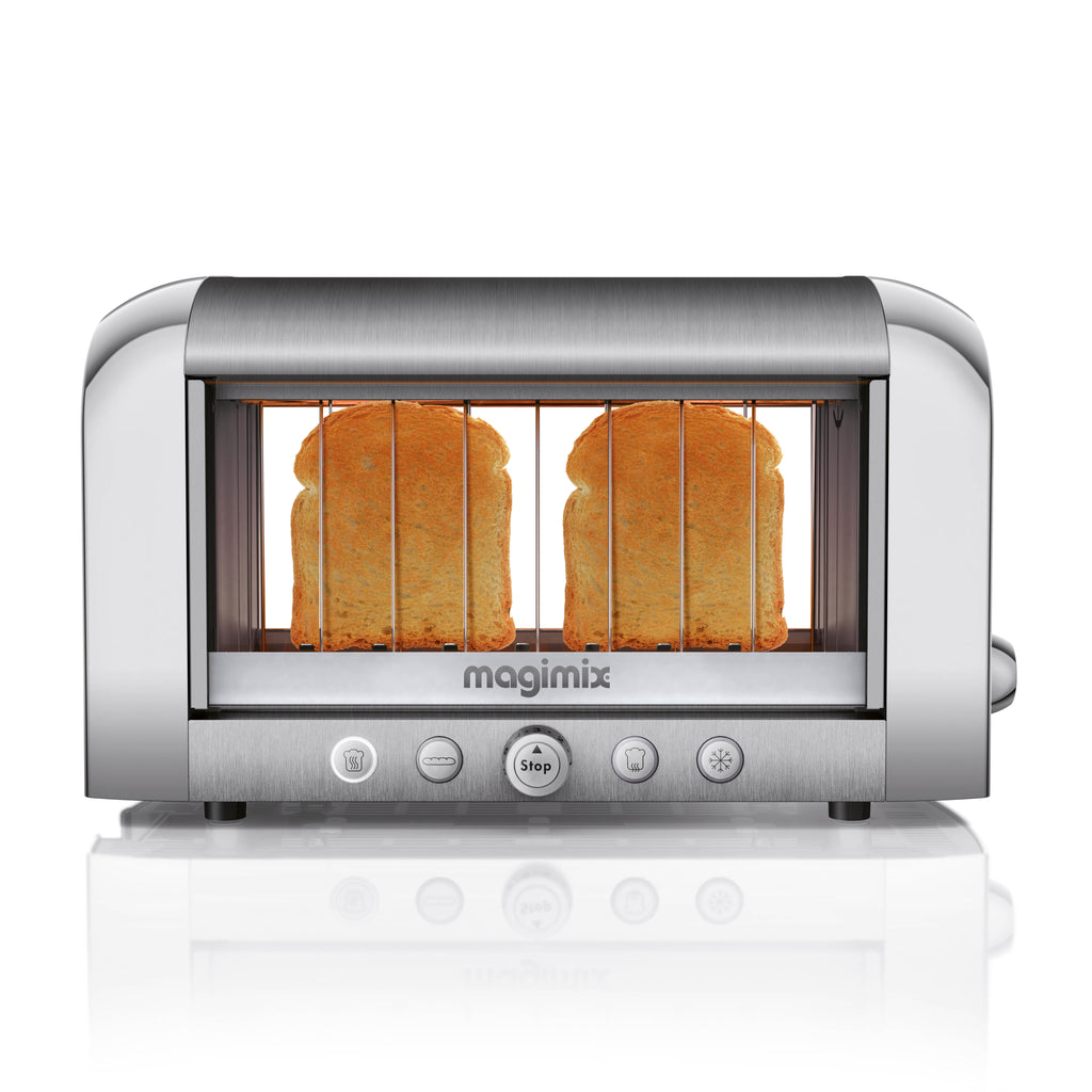 Der erste Toaster mit Panoramafenster, für perfekte Toasts, genauso wie Sie sie mögen!Dieser Toaster verfügt über eine elektronische Temperaturregelung (8 Stufen), beleuchtete Tasten, einen XL-Schlitz von 260x41mm, eine Krümelschublade, eine Doppelwand aus Borosilikat und ein Mittelteil aus Edelstahl.4 Quarzstrahler für eine perfekte BräunungExtrahoher Lift, praktisch zum Herausnehmen kleiner Scheiben ohne sich zu verbrennenStopp-Taste zum Anhalten des ToastvorgangsXL-Schlitz für: 1 grosse Scheibe Bauernbrot2 Scheiben Sandwichbrot4 Stücke BaguetteZusätzlich zu dieser einzigartigen Funktion verfügt der Toast Vision über weitere Optionen, die seine Wartung und Verwendung erheblich vereinfachen werden. So ist er z. B. mit einem extra hohen Lift ausgestattet, um die kleinen, duftenden Scheiben aufzufangen, ohne sich zu verbrennen, mit einer seitlichen Krümelschublade, einer Stopp-Taste, um den Toastvorgang während des Zyklus zu unterbrechen, und mehr.4 Quarzrohre sorgen für eine optimale Temperaturverteilung und garantieren so ein gleichmässig gebräunter Toast.Innovationspreis der Pariser Messe und Designpreis von Design Observer.Massen: 45x22x22 cmGewicht: 4.9 kg