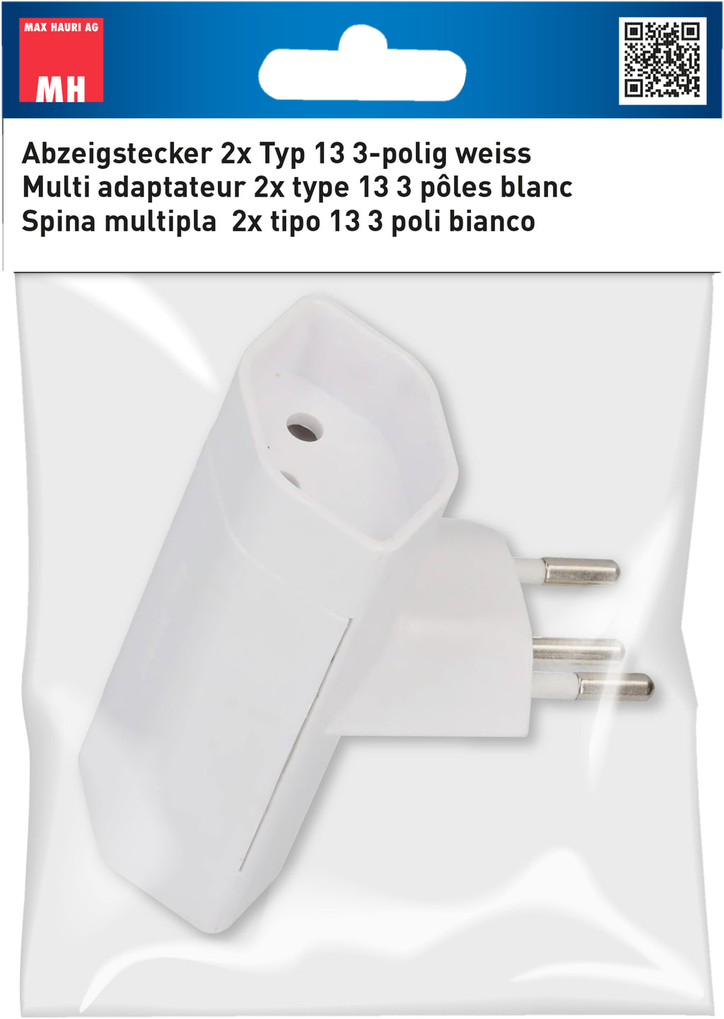 Max Hauri Abzweigstecker 2x Typ13 3-polig weiss T-Form