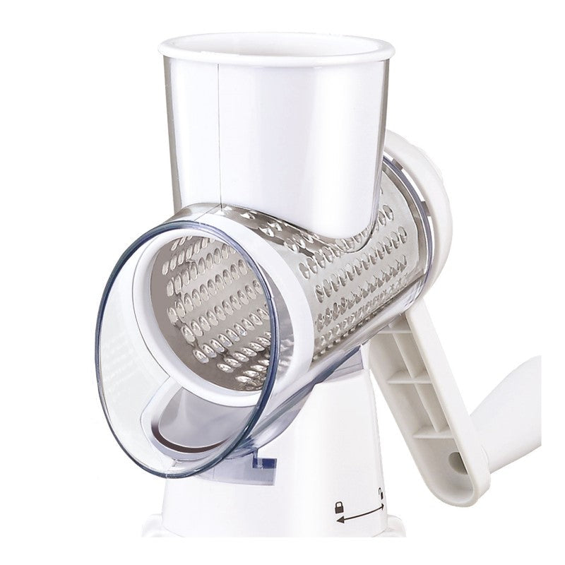Der Sumo Slicer kombiniert die Vielseitigkeit und Präzision von Messern mit der Geschwindigkeit einer Küchenmaschine. Ausserdem benötigt der Sumo Slicer nur minimal Platz und vereinfacht Ihnen die Arbeit dennoch enorm. Das Geheimnis liegt in den ultrascharfen, austauschbaren Edelstahlklingen. Damit raspeln, schneiden und reiben Sie bis zu 18. Mal schneller als bisher. Und das Beste: SUMO SLICER saugt sich an jede glatte Oberfläche perfekt an und hält bombenfest. Schneiden Sie Zwiebeln ohne eine Träne, Pilze für köstliche Suppen oder Paprika für Ihre Pizza. Wechseln Sie die Edelstahlklinge auf die grobe Reibe und kurbeln Sie mühelos einen Berg herrlichen Käse, Kartoffeln für leckeren Reibekuchen oder zaubern Sie perfekte Salate. Und wenn Sie fertig sind - einfach die Fixierfunktion öffnen und unter fliessendem Wasser reinigen oder ganz einfach in die Spülmaschine geben.