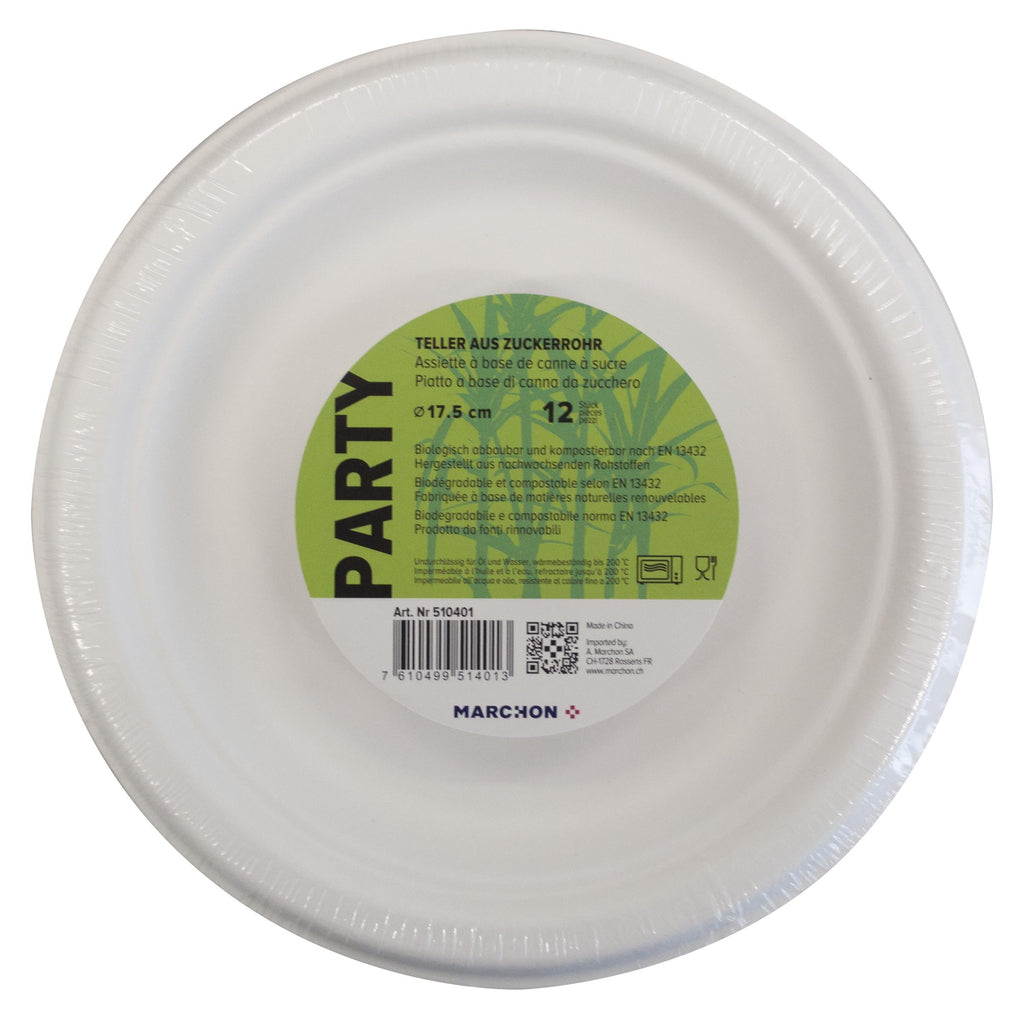 PARTY Teller rund 17.5 cm Zuckerrohr 12 Stück