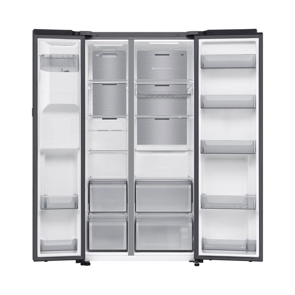 Der Samsung RS5000 Food Center ist die perfekte Kombination aus innovativer Technik und praktischen Funktionen. Mit Bluetooth und eingebauten Lautsprechern kannst du Musik hören oder Podcasts geniessen, während du in der Küche unterwegs bist. Dank Bixby und dem integrierten Mikrofon steuerst du den Kühlschrank ganz einfach per Sprachbefehl. Über die WiFi-Funktion hast du die Möglichkeit, das Gerät auch aus der Ferne zu überwachen und zu steuern. Das 9" LCD AI Home Display sorgt für eine klare Anzeige aller wichtigen Informationen. Die Tür öffnet sich automatisch per Auto Open Door Funktion – ideal für Hände, die gerade voll sind. Mit LED-Beleuchtung hast du immer einen guten Überblick, und die Power Cool- sowie Power Freeze-Funktionen sorgen für optimale Lagerbedingungen. Das Mono Cooling System garantiert eine gleichmässige Kühlung im gesamten Innenraum.