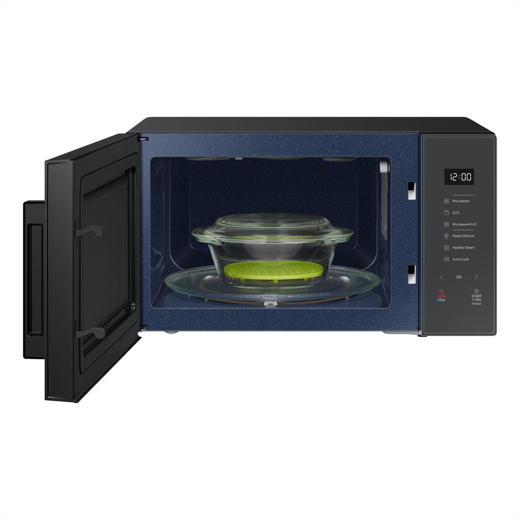 Die Samsung MG30T5068UC Mikrowelle steamt das Essen dank der Healthy-Steam Funktion und taut die Lebensmittel schnell und gleichmässig auf. Dank Home Dessert kann eine grosse Auswahl an Home Desserts zubereitet werden.