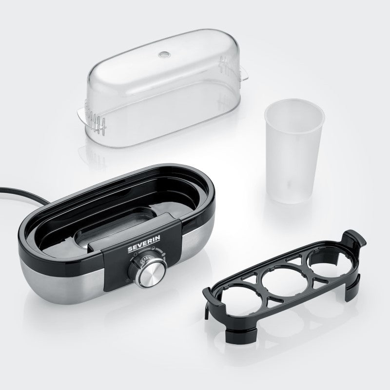 Der perfekte Eierkocher für kleine Haushalte. Mit dem EK 3163 in hochwertigem Edelstahl-Design lassen sich ganz bequem bis zu 3 Eier gleichzeitig kochen.
