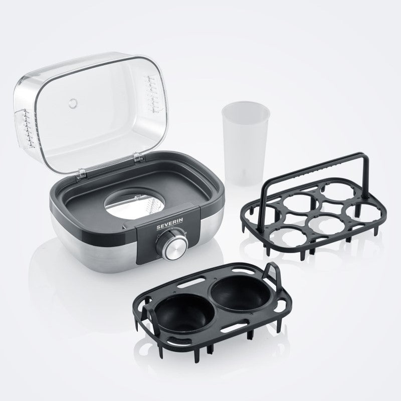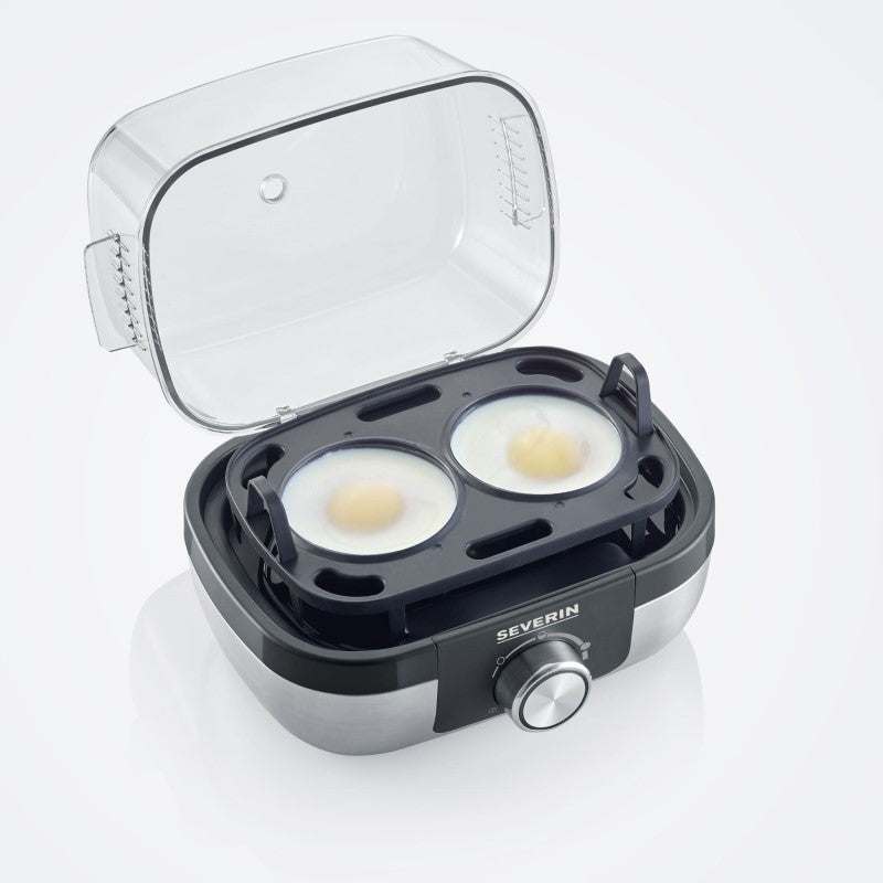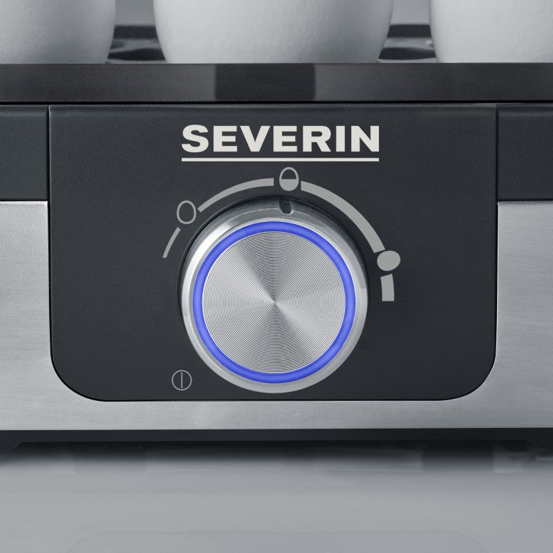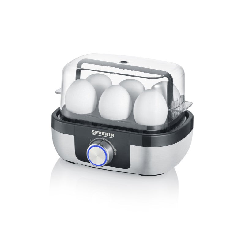 Mit dem EK 3167 von Severin in hochwertigem Edelstahl-Design lassen sich ganz bequem bis zu 6 Eier gleichzeitig kochen.