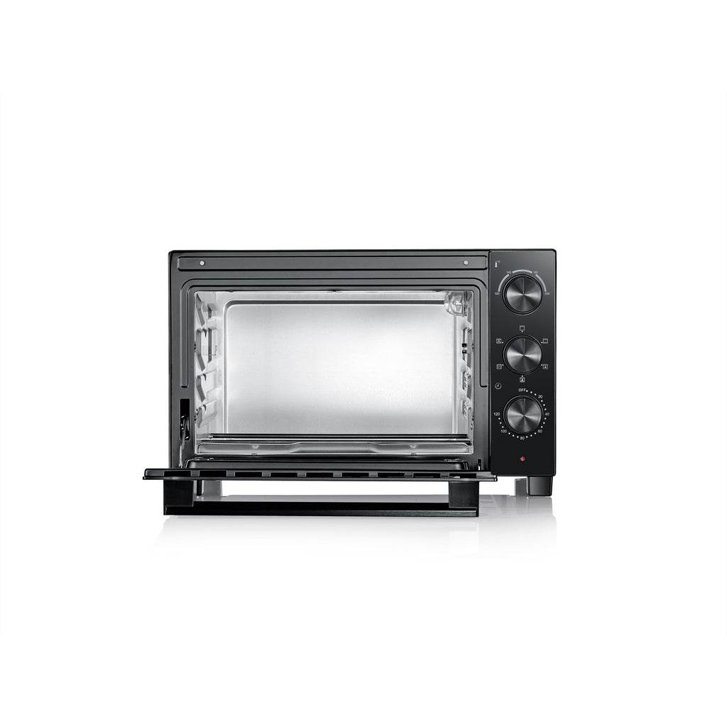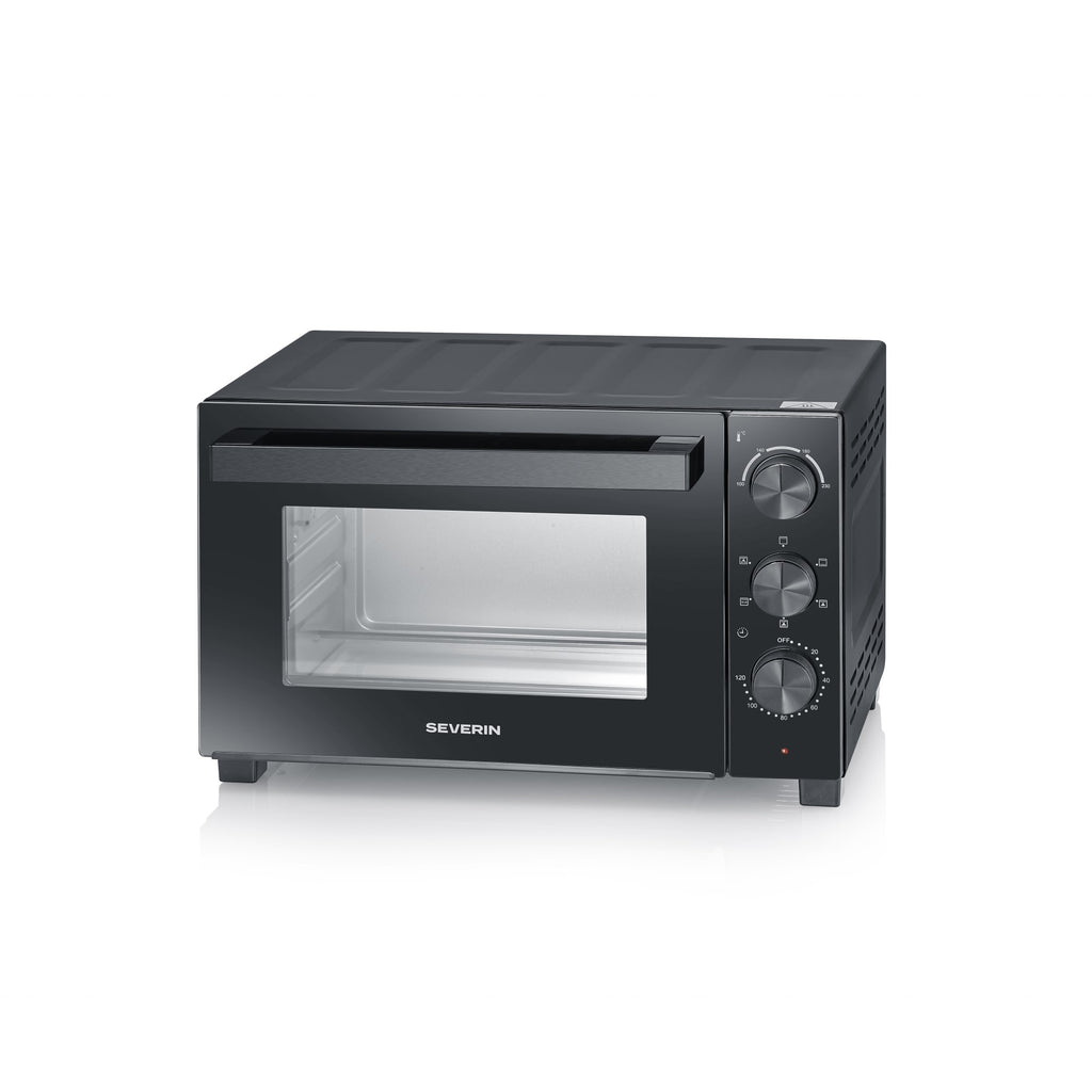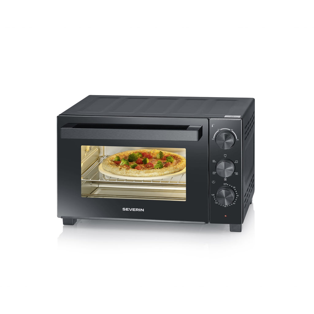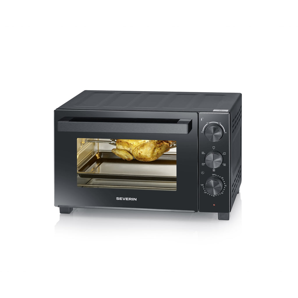 Der Severin TO2075 Back- und Toastofen bietet mit seinem 30-Liter-Garraum ausreichend Platz für Pizza, Pommes, Brötchen, Kuchen oder Aufläufe und eignet sich auch hervorragend für grössere Portionen. Die integrierte Umluft-Funktion sorgt für eine gleichmässige Hitzeverteilung und optimale Backergebnisse, während der praktische Drehspiess ideal für die Zubereitung von ganzen Hähnchen oder Fleischspiesse ist. Ober- und Unterhitze lassen sich je nach Bedarf separat oder kombiniert einstellen, und der grosse Temperaturbereich von 100 bis 230 °C ermöglicht vielseitige Zubereitungen. Der integrierte Timer mit bis zu 120 Minuten Laufzeit und Signalton sowie die automatische Abschaltung sorgen für komfortable und sichere Bedienung. Mit seinen kompakten Aussenmassen von 48,5 × 37,5 × 31,0 cm passt der Backofen problemlos in jede Küche und bietet dennoch viel Platz im Innenraum.