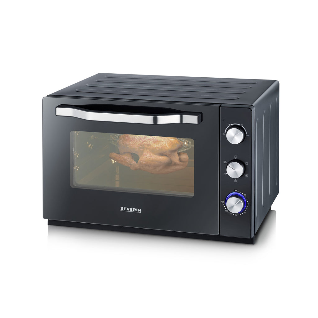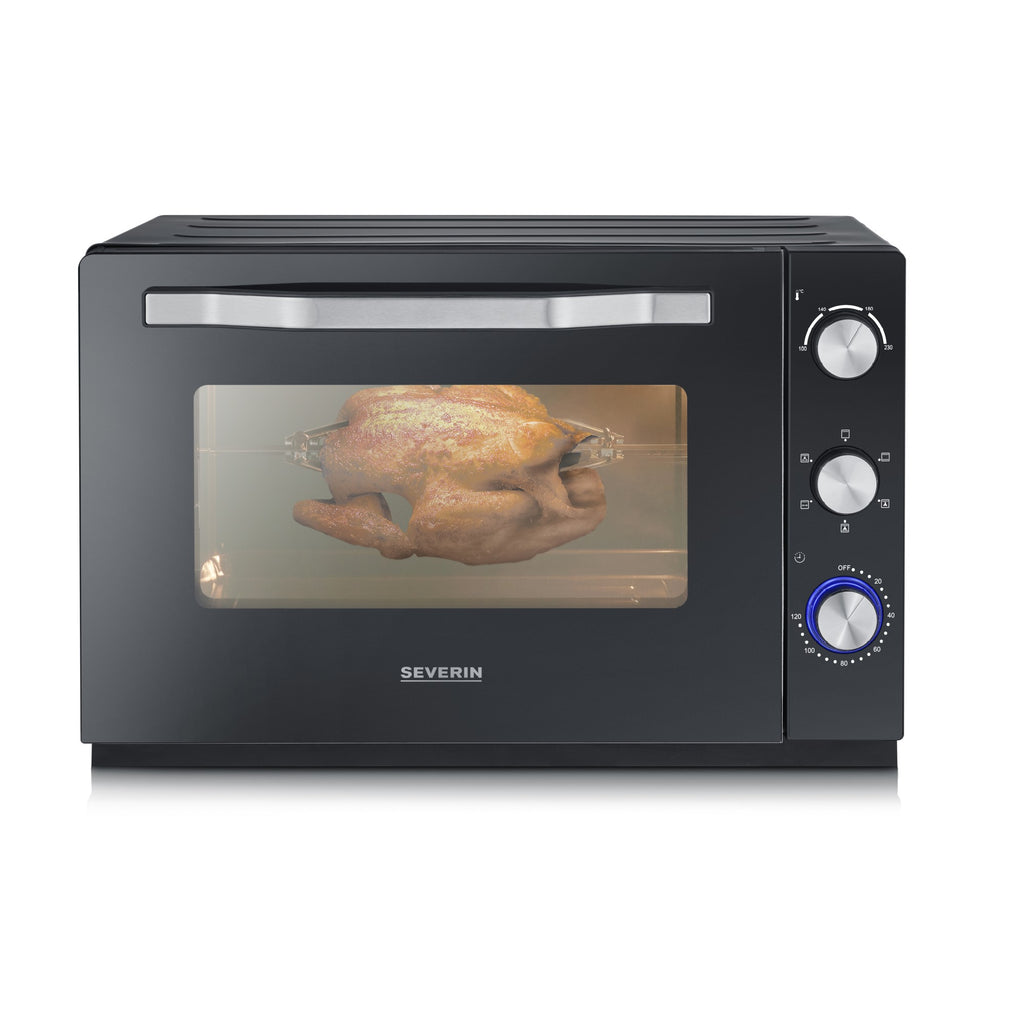 Die vielseitige Grillfunktion mit enthaltenem Drehspieß und Drehspießantrieb bietet die Möglichkeit, köstliche Grillhähnchen zuzubereiten. Dank Ober-/Unterhitze, Umluftfunktion sowie dem mitgelieferten Grillrost und Backblech sind die Zubereitungsmöglichkeiten von Pommes bis hin zu Kuchen nahezu unbegrenzt.
