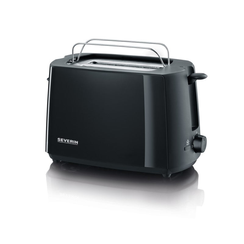 Dieser Automatik-Toaster AT2286 in schwarz verfügt über zwei Röstschächte für je eine Brotscheibe und über den einstellbaren Bräunungsgrad wird hier eine gleichmässige Bräunung von beiden Seiten erzielt.