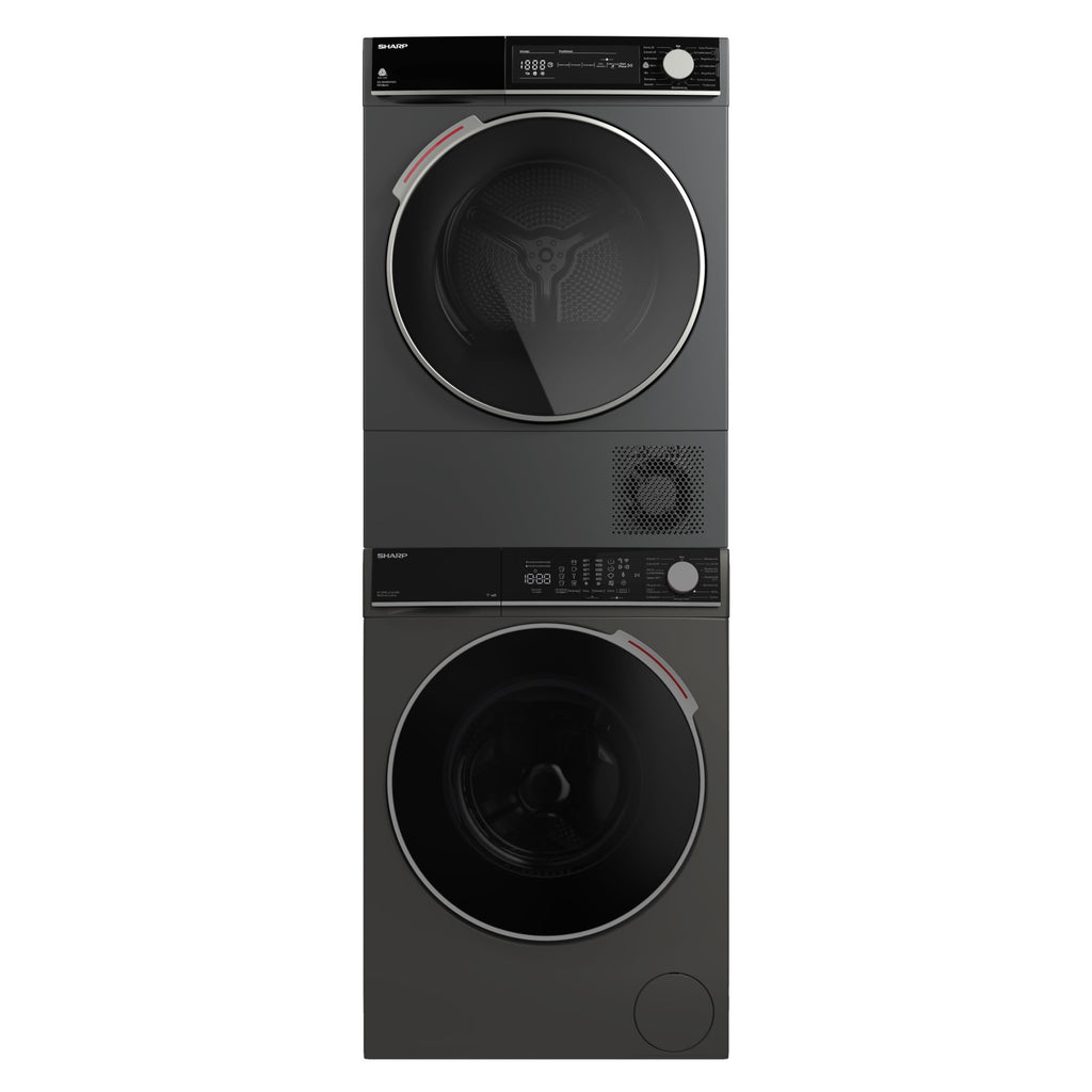 Das Sharp Waschturm Set Titlis 10/8 kg kombiniert die 10 kg Waschmaschine ES-WNFL014CADA mit dem 8 kg Wäschetrockner KD-NHH8S9GA3-CH in stilvollem Espresso Gray – die ideale Lösung für grosse Haushalte mit hohem Wäscheaufkommen.