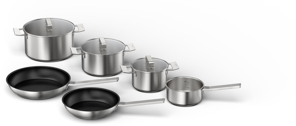 Induktionsgeeignet Topf Durchmesser 22 (unten) / 24 cm (oben), 5,5 l Inhalt, mit Glasdeckel Topf Durchmesser 18 (unten) / 20 cm (oben), 3,5 l Inhalt, mit Glasdeckel Topf Durchmesser 14 (unten) / 16 cm (oben), 2 l Inhalt, mit Glasdeckel Pfanne Durchmesser 22 (unten) / 28 cm (oben), mit Antihaftbeschichtung Pan Durchmesser 22 (bottom) / 28 cm (top), with non-stick coating Stielkasserolle Durchmesser 14 (Boden) / 16 cm (Topfrand); 1,2 l Fassungsvermögen Material: Edelstahl Ja BACKOFEN_GEEIGNET_BL (mit KOCHGESCHIRRDECKELdeckel bis 180° C, ohne KOCHGESCHIRRDECKELdeckel bis 220° C) Durable 3 layer Antihaftbeschichtung Balance en litres à l'intérieur des pots;