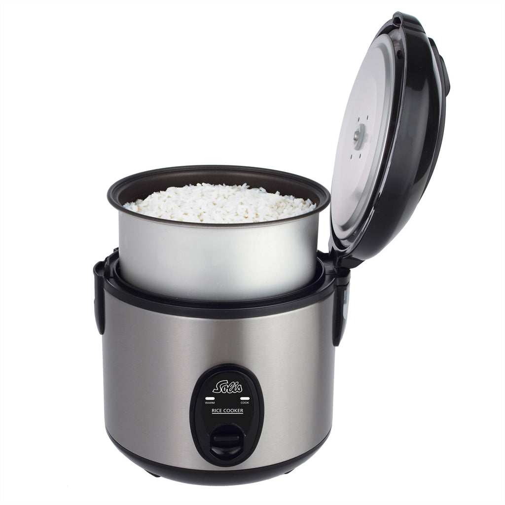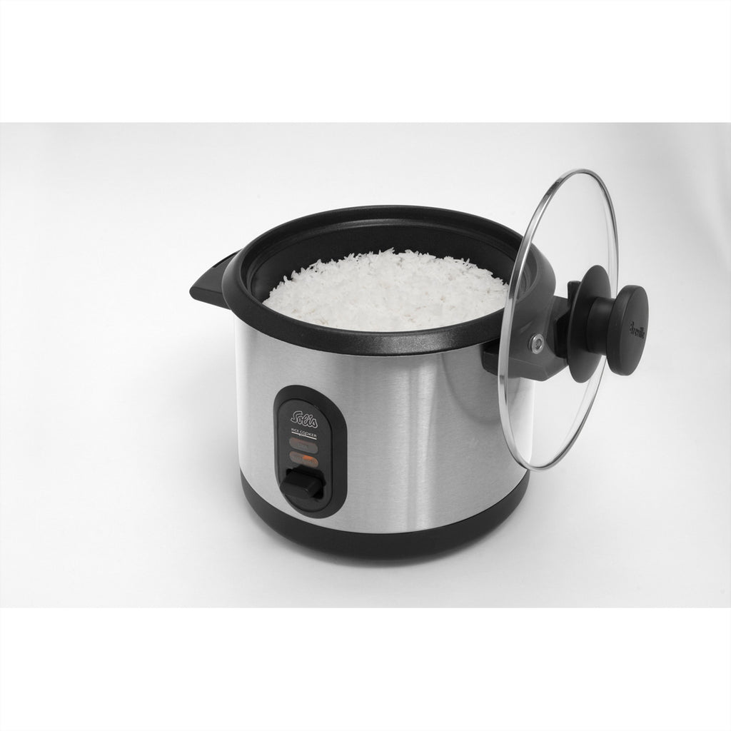 Dieser Reiskocher von Solis ermöglicht das perfekte Kochen von bis zu 4 Tassen ungekochtem Reis, d. h. bis zu acht Tassen gekochtem Reis in Restaurantqualität.
