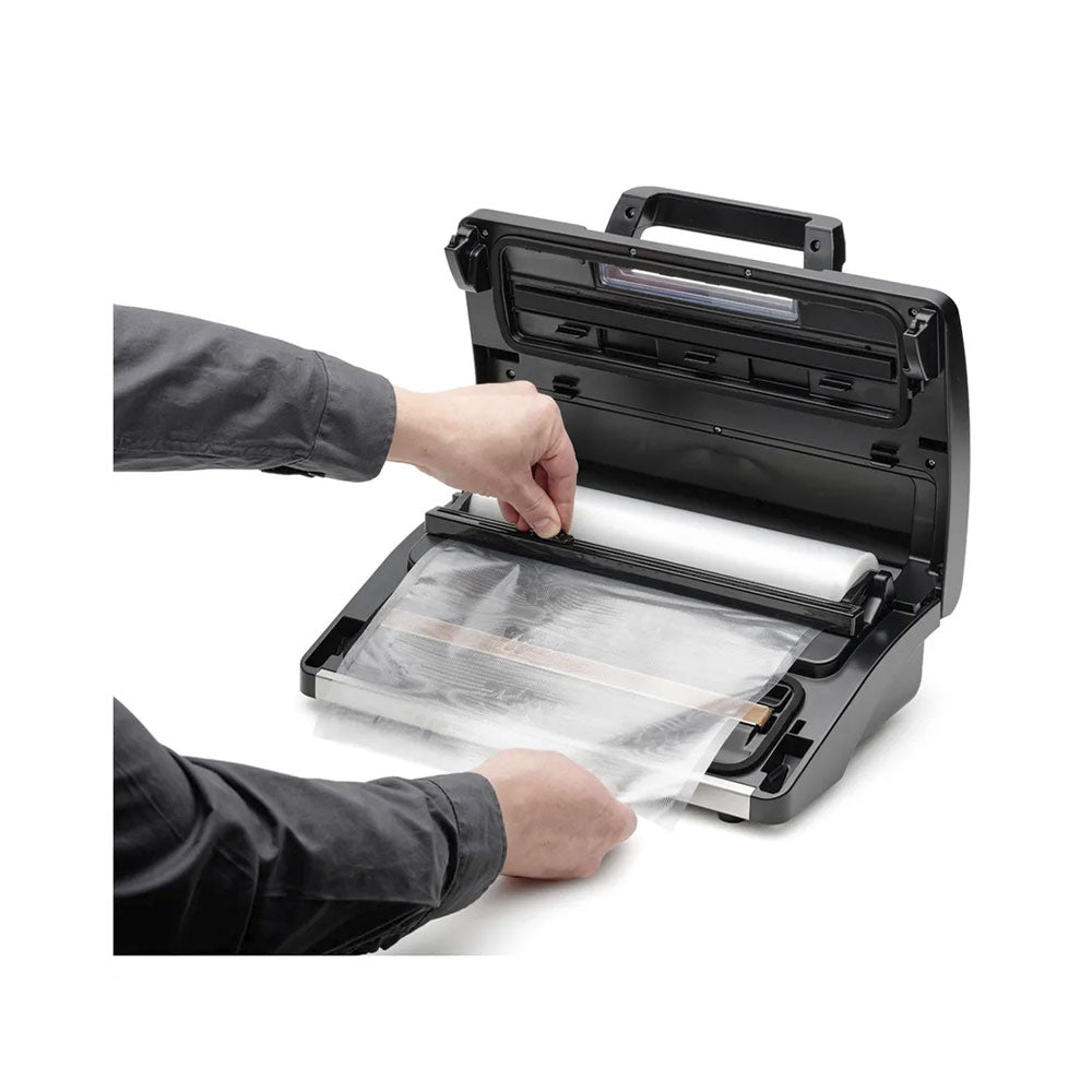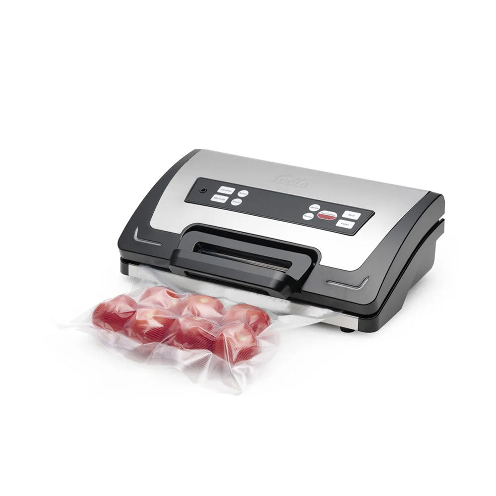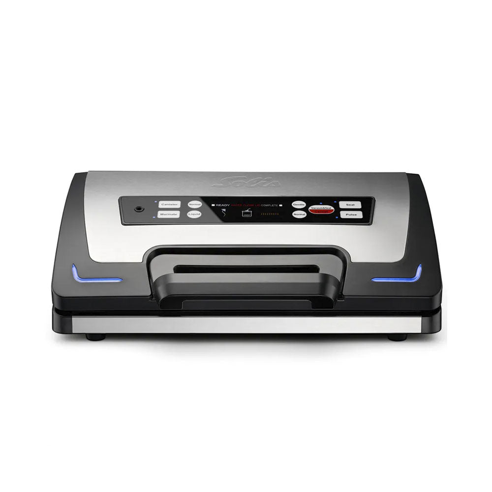 Mit dem Solis Vakuumiergerät Typ 5708 bleiben Lebensmittel spürbar länger frisch – ganz gleich, ob trocken, feucht oder flüssig. Die spezielle Pulse-Vakuumfunktion sorgt für besonders schonendes Versiegeln empfindlicher Produkte. Die Handhabung ist dank des grossen Verriegelungshebels und der übersichtlichen LED-Anzeigen kinderleicht. Eine integrierte Schneidevorrichtung ermöglicht es, die Folie stets in passender Länge zuzuschneiden. Zum Start sind bereits zwei Rollen Folie, zehn Beutel sowie ein Vakuumierschlauch enthalten. Ideal auch zum Marinieren. Komfortabel, vielseitig, typisch Solis.