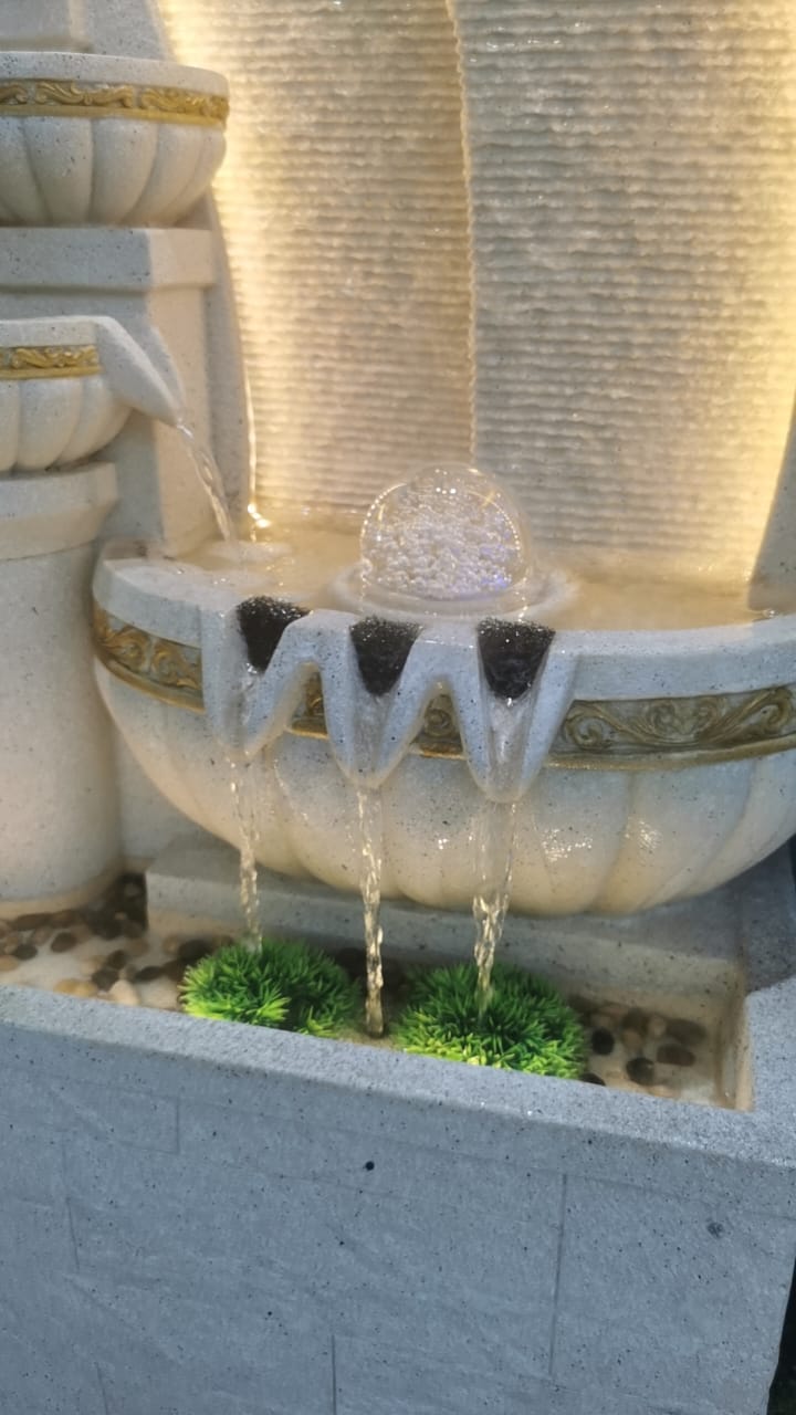 Tauchen Sie ein in die Welt der Eleganz und Ruhe mit unserem Weißen Wasserbrunnen mit vier majestätischen Wasserfällen. Dieses Kunstwerk vereint die Schönheit der Natur mit modernem Design und schafft eine harmonische Atmosphäre in Ihrem Zuhause oder Garten.