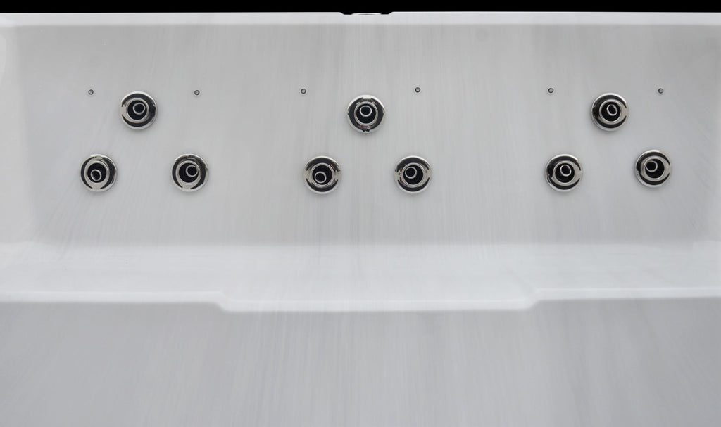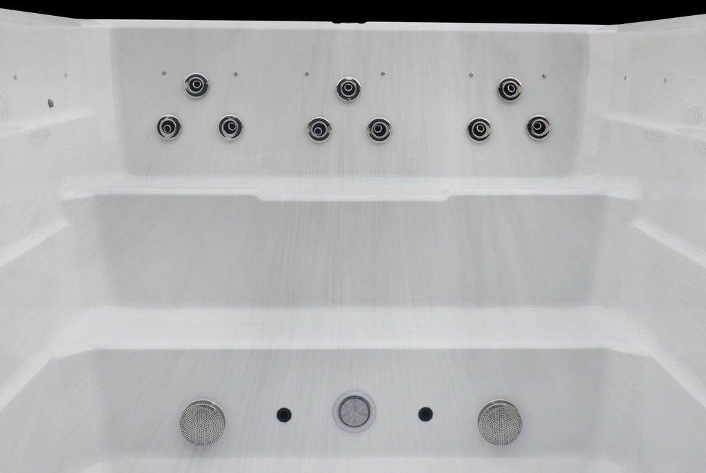 Das Swimspa Rhenium White verfügt auch über ein doppelfilterndes System, das für sauberes und klares Wasser sorgt, sowie neun verstellbare Massagedüsen, die an Ihre Bedürfnisse angepasst werden können. Das 9200 Liter große Wasservolumen bietet genügend Platz zum Schwimmen, Entspannen und Genießen.