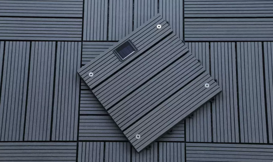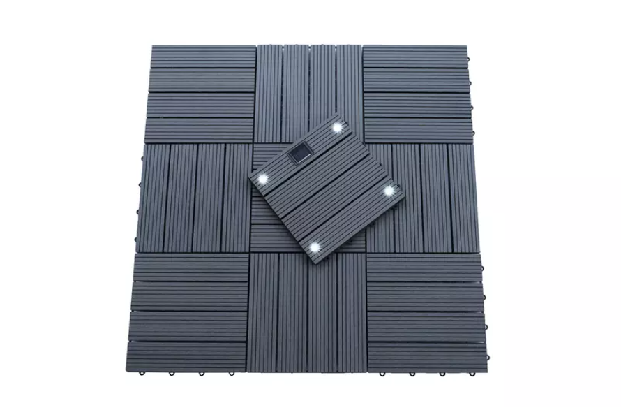 Dank der hohen Qualität unserer WPC Klickfliesen mit integriertem LED-Beleuchtungssystem auf Solarenergiebasis können Sie sicher sein, dass Sie ein langlebiges und zuverlässiges Produkt erhalten, das Ihnen viele Jahre Freude bereiten wird. Wenn Sie auf der Suche nach einer effizienten und umweltfreundlichen Möglichkeit sind, um Ihre Terrasse oder Ihren Garten in den Abendstunden zu beleuchten, sind unsere WPC Klickfliesen in Grau mit integriertem LED-Beleuchtungssystem auf Solarenergiebasis eine hervorragende Wahl.