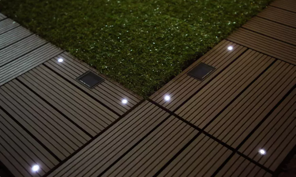 Dank des integrierten LED-Beleuchtungssystems auf Solarenergiebasis bieten unsere WPC Klickfliesen eine umweltfreundliche und effiziente Möglichkeit, um Ihre Terrasse oder Ihren Garten in den Abendstunden zu beleuchten. Das Solarpanel auf jeder Fliese sammelt während des Tages Sonnenenergie und speichert sie in einem leistungsstarken Akku, der die LED-Leuchten in der Nacht mit Strom versorgt. Das Ergebnis ist eine beeindruckende und stimmungsvolle Beleuchtung Ihrer Terrasse oder Ihres Gartens, ohne dass zusätzliche Stromkosten anfallen.