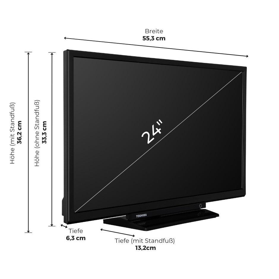 Der Toshiba TV 24WV3E63DA ist ein kompakter HD-Ready Smart TV, der modernes Design mit smarten Funktionen verbindet und sich ideal für kleinere Räume, Küche, Schlafzimmer oder den Zweitfernseher eignet.