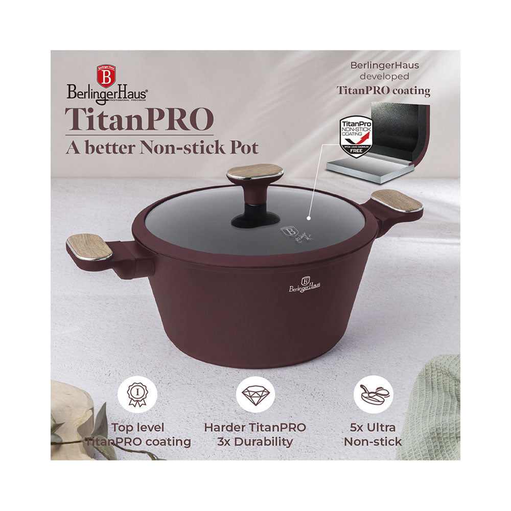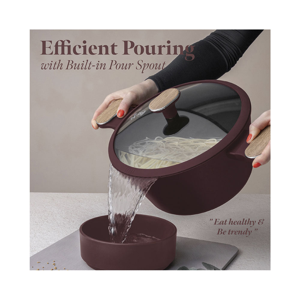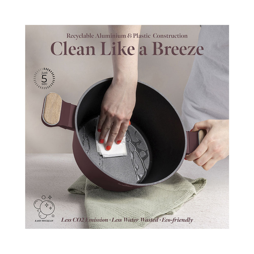 Das 10-teilige Kochgeschirr-Set Leonardo Nordic Collection von Berlinger Haus kombiniert modernes Design mit hoher Funktionalität. Eine besonders strapazierfähige 3-fach Antihaftbeschichtung titanPro verhindert das Anhaften von Speisen und erleichtert das Kochen. Ergonomische Soft-Touch-Griffe mit silbernem Einsatz in heller Holzoptik sorgen für angenehme Handhabung und bleiben während des Kochens kühl. Die Deckel aus gehärtetem Glas sind mit einem Soft-Close-System aus hitzebeständigem Silikon und einem praktischen Dampfloch ausgestattet. Die matte Oberfläche in Kombination mit dem minimalistischen Stil verleiht dem Set eine stilvolle, moderne Optik. Dank Turbo-Induktionstechnologie eignet sich das Kochgeschirr für alle Herdarten und sorgt für eine schnelle sowie gleichmäßige Wärmeverteilung. Das Set ist umweltfreundlich, frei von PFOA, Blei und Cadmium und lässt sich zudem leicht reinigen – perfekt für den anspruchsvollen Küchenalltag.
