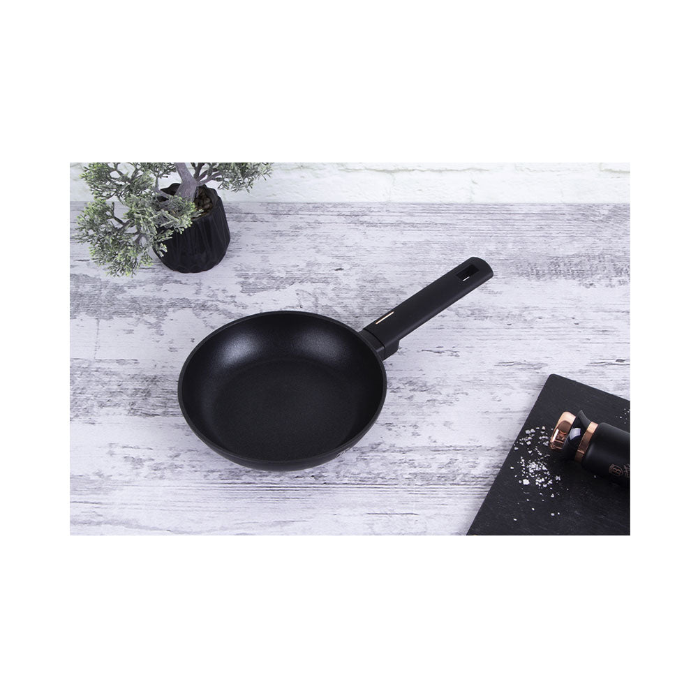 Produktinformation, Aluminium geschmiedet, dreifache Antihaftbeschichtung, ergonomischer Soft-Touch Griff, Kleiner Auflauf: Ø20 x 10,4 cm, 2,5 l., Mittlerer Auflauf: Ø24 x 11,8 cm, 4,1 l, Großer Schmortopf Ø28 x 12,4 cm 6,1L, Bratpfanne Ø24 x 6,5 cm 2,3 l., Kleine Pfanne Ø20 x 4,2 cm 1,0 l, Frei von Schadstoffen, sowie PFOA, Blei und Cadmium