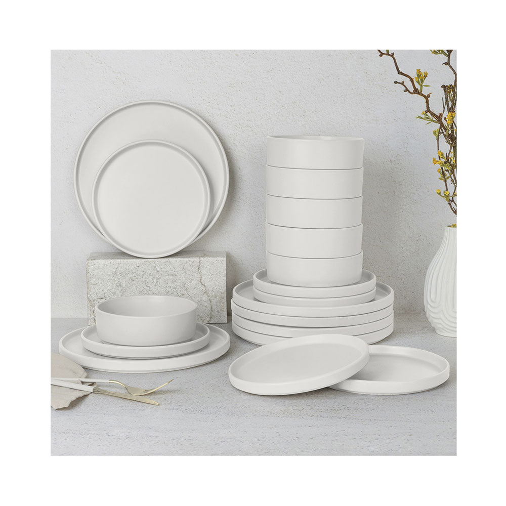 Das 18-teilige Tellerset Sahara Collection von Berlinger Haus besticht durch hochwertiges Keramik mit hoher Robustheit und Langlebigkeit. Die matte Cream-Farbe sorgt für einen modernen, eleganten Look und fügt sich harmonisch in unterschiedlichste Tischdekorationen ein. Das minimalistische Design ergänzt verschiedenste Küchenstile und lässt sich vielseitig kombinieren. Spülmaschinenfest und mikrowellengeeignet, eignet sich das Set ideal für den täglichen Gebrauch. Die Kombination aus Funktionalität und stilvoller Optik macht dieses Geschirr zu einer praktischen wie ästhetischen Lösung für den modernen Haushalt.