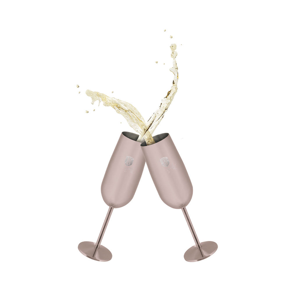 Die Berlinger Haus Edelstahl Sektgläser aus der Black Rose Collection vereinen Eleganz und Funktionalität. Mit einem Fassungsvermögen von 260 ml und einer edlen Roségold-Farbe setzen sie stilvolle Akzente bei jeder Feier. Der breite, stabile Boden sorgt für sicheren Halt, während der hohe Stiel das Glas noch eleganter macht. Hergestellt aus hochwertigem rostfreien Stahl 18/10, bieten diese Gläser hervorragende Qualität und sind perfekt für besondere Anlässe. Im praktischen 2er Set – ideal für dich und deinen Lieblingsgast., , , Produktinformation, , Fassungsvermögen: 260 ml, 2er Set, Ausgezeichnete Qualität, Breiter, stabiler Boden, um Verschütten zu vermeiden, Hoher, eleganter Stiel