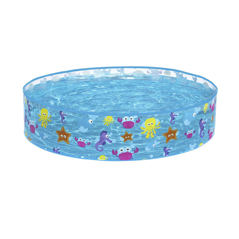 Produktinformationen, , Grösse: Ø 122 x 25 cm, Wasserkapazität: 277 Liter, Geeignet ab 2 Jahren, Strapazierfähige und stabile Wände aus PVC, Robuster und fest verbundener PVC-Boden, Kein Aufblasen notwendig, Inklusive Reparaturflicken, Farbe: blau mit Meerestieren