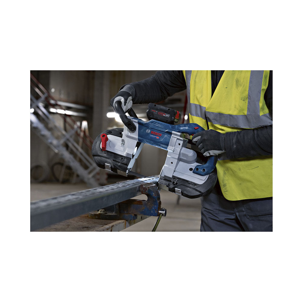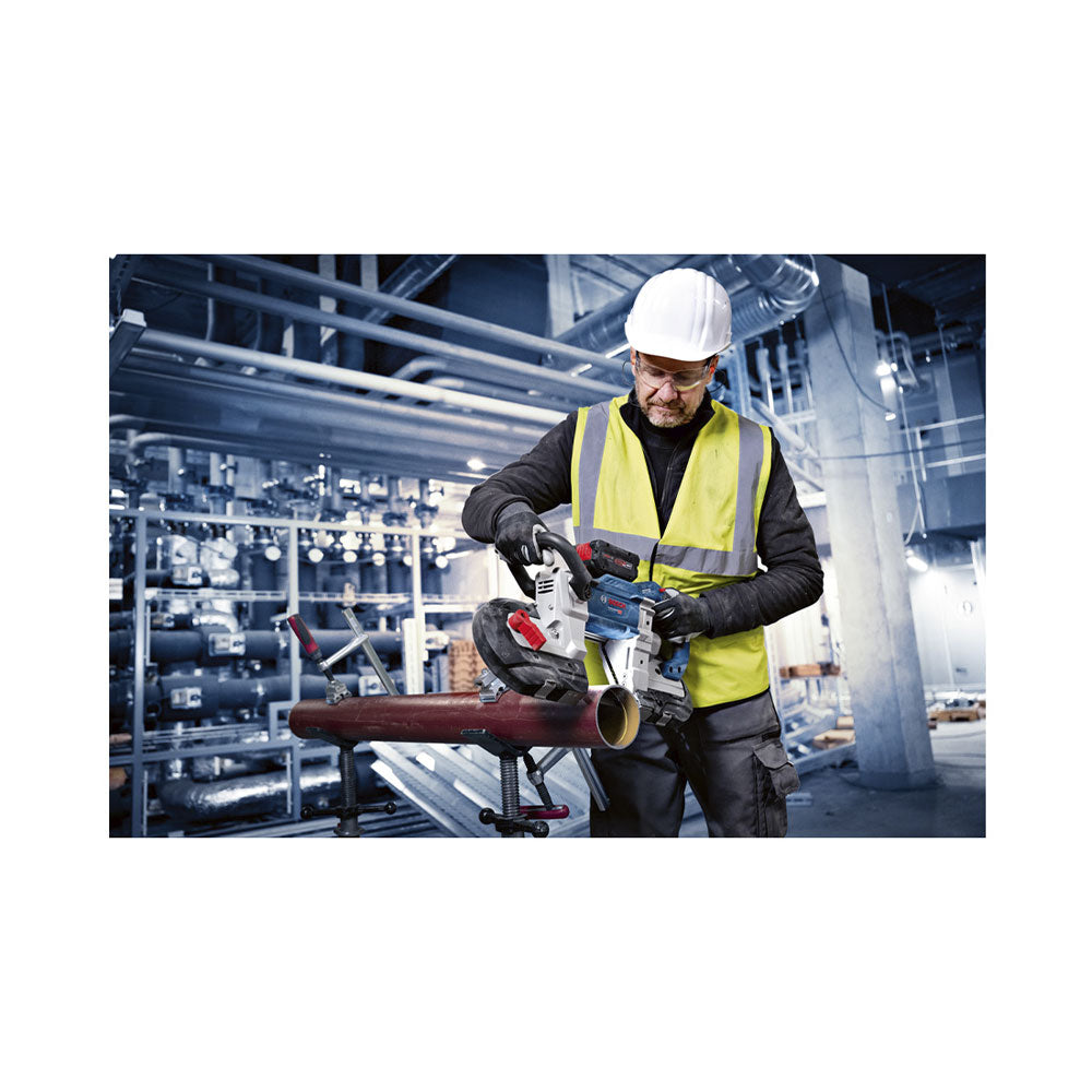 Die GCB 18V-127 von Bosch ist eine leistungsstarke Akku-Bandsäge für anspruchsvolle Metallarbeiten. Mit ihrem bürstenlosen Motor ermöglicht sie schnelle und saubere Schnitte durch Rohre, Profile und andere Metallmaterialien – bei einer beeindruckenden Schnittkapazität von bis zu 127 x 127 mm. Dabei arbeitet sie nahezu funkenfrei und mit besonders geringer Vibration. Das sorgt nicht nur für mehr Sicherheit, sondern auch für präzisere Ergebnisse. Ein integriertes LED-Licht beleuchtet den Schnittbereich optimal, während verschiedene Geschwindigkeitsmodi eine flexible Anpassung an das jeweilige Material erlauben. Die kompakte Bauweise und der kabellose Betrieb machen sie ideal für den mobilen Einsatz auf der Baustelle oder in der Werkstatt.
