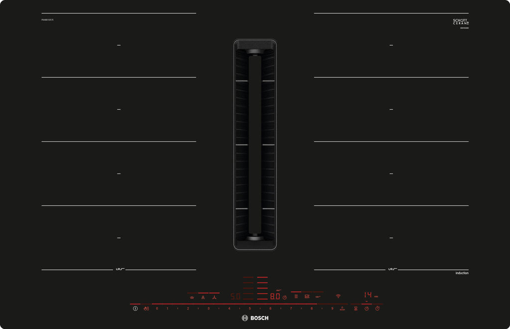 BOSCH Kochfeld mit integriertem Abzug Serie 8, Induktions Kochfeld mit integriertem Dunstabzug, 80 cm, flächenbündig