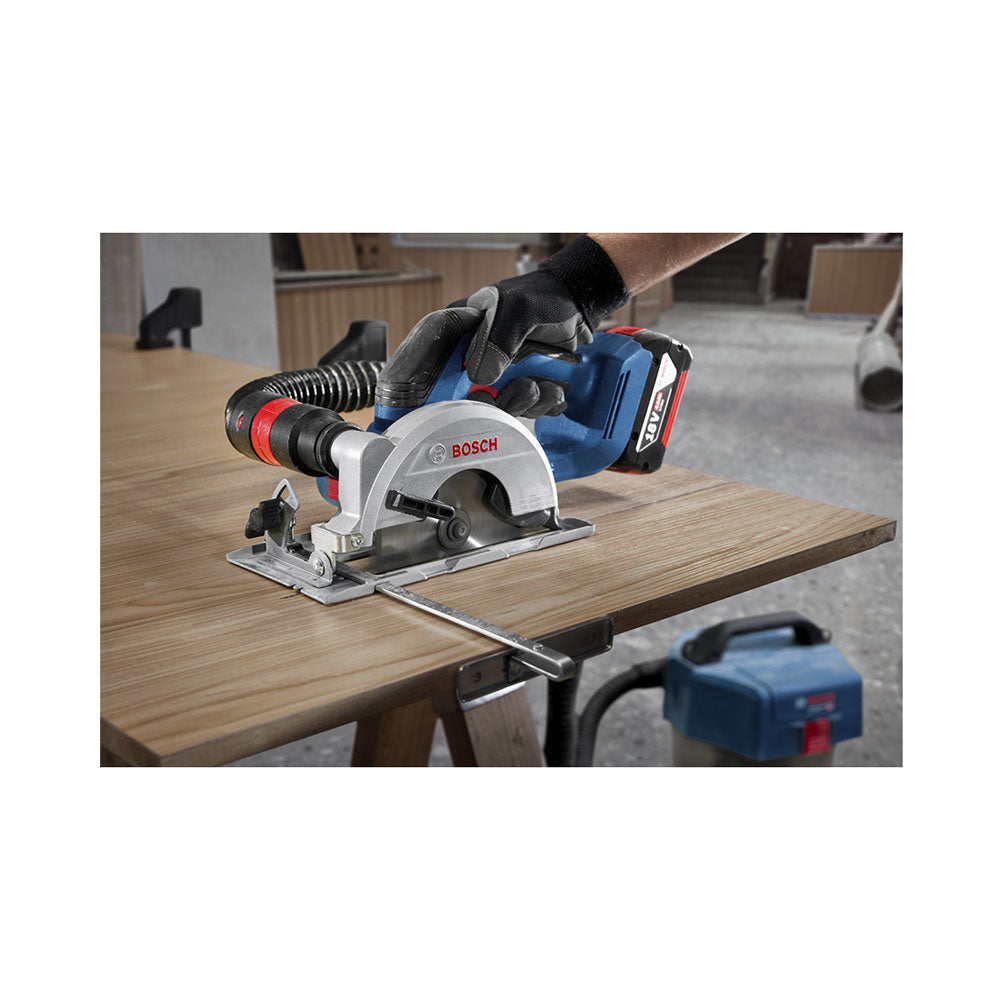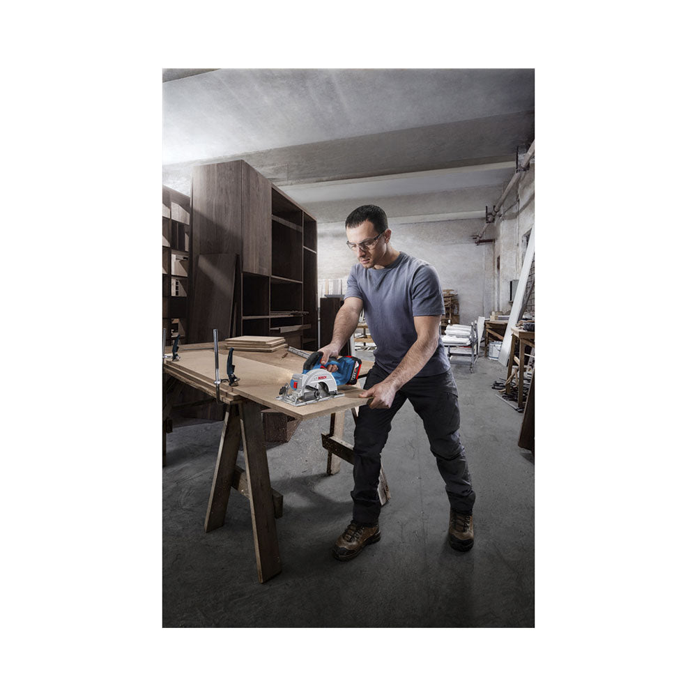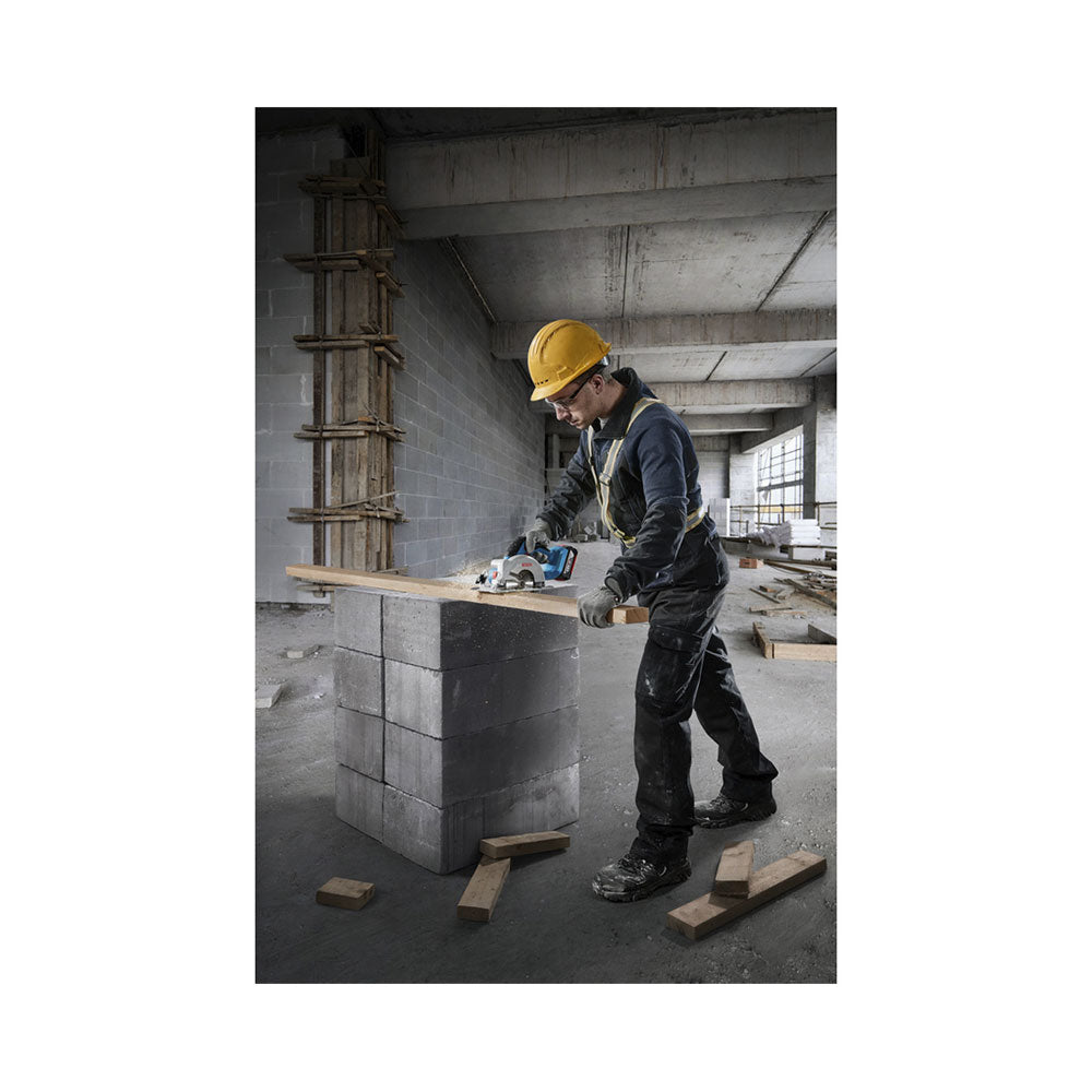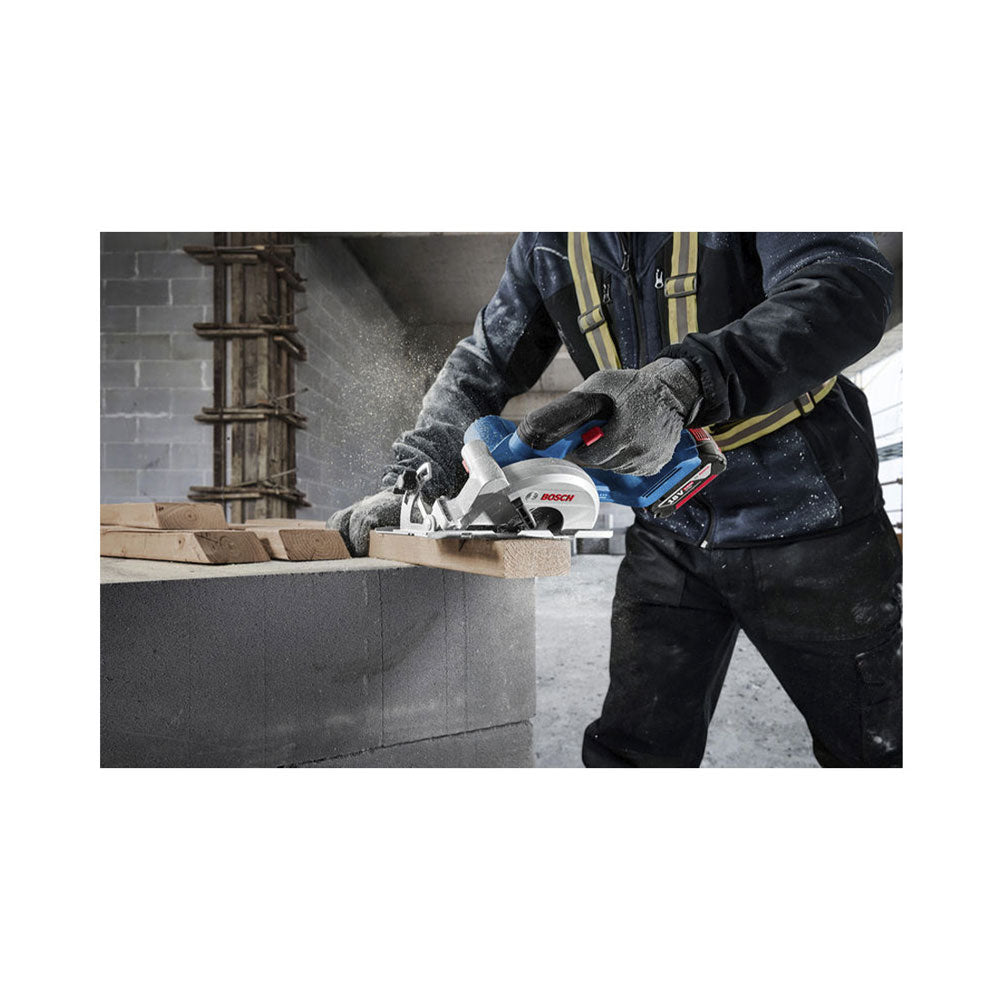 Die Bosch Akku-Kreissäge GKS 18V-51 Professional kombiniert einen leistungsstarken 18-V-Bürstenmotor mit einem kompakten und leichten Gehäuse, das präzise Schnitte bei hoher Bewegungsfreiheit ermöglicht. Das 140 mm Sägeblatt erlaubt Schnitte bis 51 mm bei 90° und bis 35 mm bei 45°, ideal für Kapp- und Längsschnitte in Bauholz, Leimholz oder OSB-Platten. Ergonomisch geformte Griffe, sanftes Anlaufen und eine Bremsfunktion sorgen für komfortables und sicheres Arbeiten. Das integrierte LED-Licht und der optimierte Absaugstutzen gewährleisten jederzeit gute Sicht auf die Schnittlinie und einen sauberen Arbeitsplatz. Mit einem Gewicht von nur 2,2 kg ohne Akku bleibt die Säge mobil und leicht zu handhaben. Die Leerlaufdrehzahl von 5.800–6.300 min?¹ ermöglicht effizientes Arbeiten, während kompakte Masse und moderater Geräuschpegel die GKS 18V-51 Professional zum vielseitigen Werkzeug für anspruchsvolle Projekte machen.