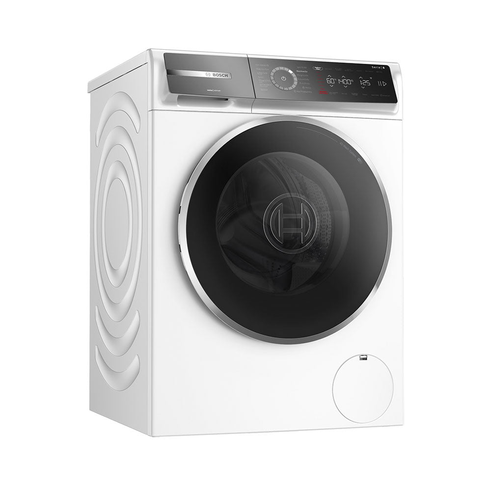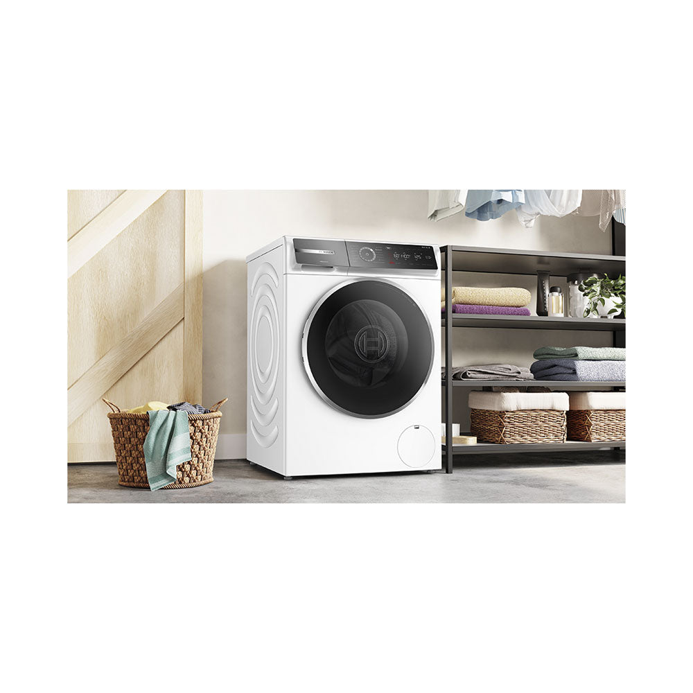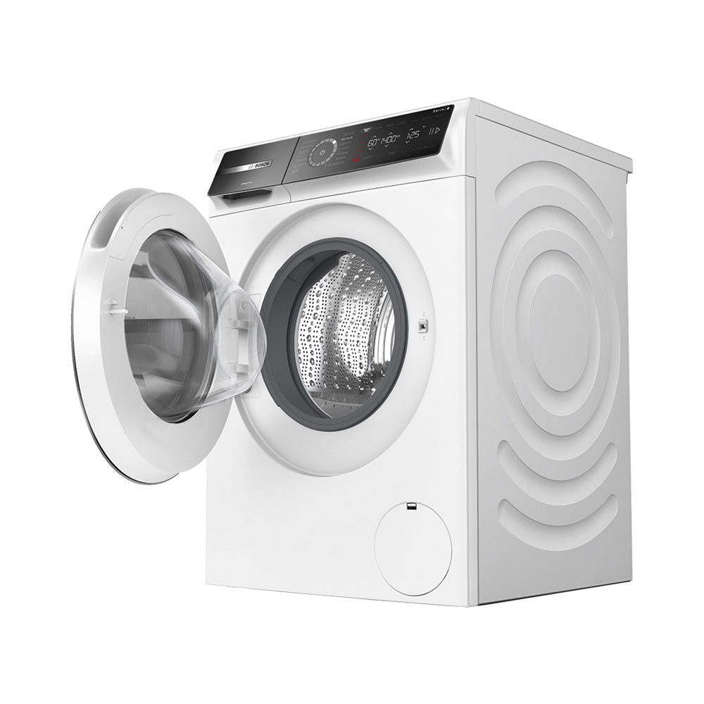 Die Bosch WGB2540CCH Waschmaschine mit 10 kg Kapazität kombiniert leistungsstarke Technik mit hohem Bedienkomfort. Das grosszügige Fassungsvermögen eignet sich ideal für grosse Wäschemengen, während die Energieeffizienzklasse A einen sparsamen Betrieb gewährleistet. Das 4D Wash System sorgt für eine besonders gründliche Durchfeuchtung der Wäsche, und der EcoSilence Drive ermöglicht einen leisen Lauf. Vielfältige Programme wie Baumwolle, Pflegeleicht oder Wolle-Handwäsche decken unterschiedliche Textilarten ab. Zusätzliche Funktionen wie die Fleckenautomatik und das Dampfprogramm Iron Assist tragen zu optimaler Pflege und reduzierter Faltenbildung bei.Die Steuerung über Home Connect erlaubt eine flexible Bedienung per App und hält das Gerät dank regelmässiger Updates auf dem aktuellen Stand. Komfort bieten ausserdem die Nachlegefunktion sowie das AntiVibration Design für mehr Laufruhe. Der integrierte AquaStop schützt zuverlässig vor Wasserschäden. Abgerundet wird das Gesamtbild durch ein ergonomisch gestaltetes Bedienfeld und eine helle LED-Trommelbeleuchtung für eine einfache Handhabung.