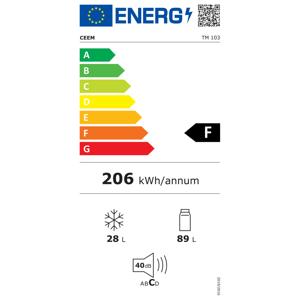 • Energieeffizienzklasse F (206 kWh/Jahr)