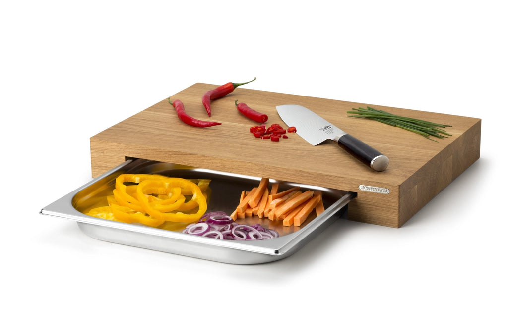 Continenta Schneidebrett Eiche mit Edelstahl Schublade, 48x32.5x6 cm 4111