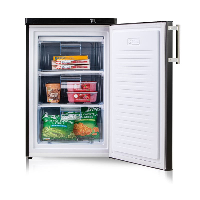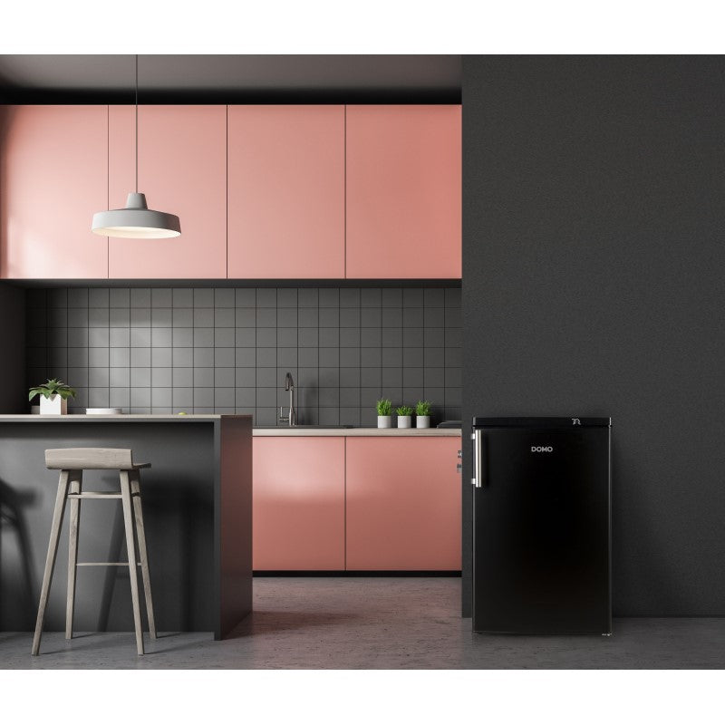 Dieser elegante Gefrierschrank DO91132F von Domo ist in schwarz-matt gestaltet und ist mit nur 38 dB kaum zu hören.