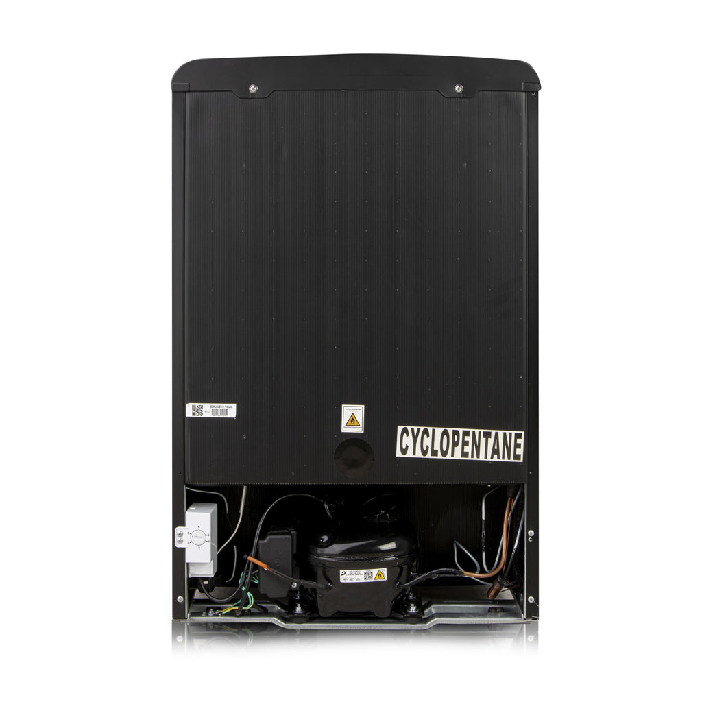 Der Domo DO91771R Gefrierschrank vereint Funktionalität mit einem ansprechenden Retro-Design. Mit seinen Abmessungen von 55 x 61,5 x 87,5 cm (B x T x H) fügt er sich gut in verschiedene Küchenumgebungen ein. Der Nutzinhalt von 80 Litern bietet ausreichend Platz für die Vorratshaltung eines kleinen Haushalts. Die drei transparenten Schubladen ermöglichen eine übersichtliche Organisation der Lebensmittel. Die mechanische Temperatureinstellung erlaubt eine einfache Handhabung. Mit einem Geräuschpegel von nur 38 dB arbeitet der Gefrierschrank angenehm leise. Das mattschwarze Gehäuse und der charakteristische Retro-Griff aus Metall verleihen dem Gerät eine besondere ästhetische Note. Die Energieeffizienzklasse C sorgt für einen moderaten Energieverbrauch.